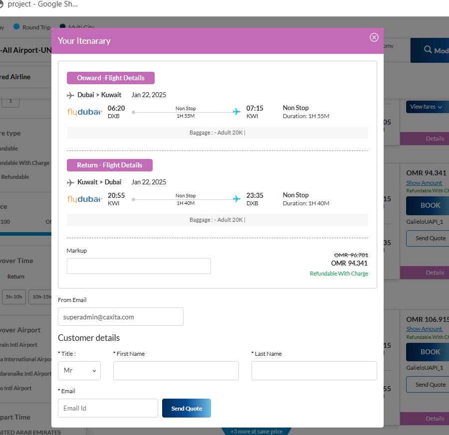 We need to implement sent quote for all our modules for b2c and b2b. For dynamic package, we have done. Remaining all modules