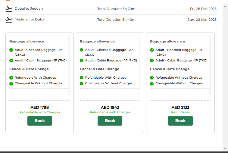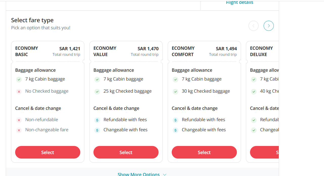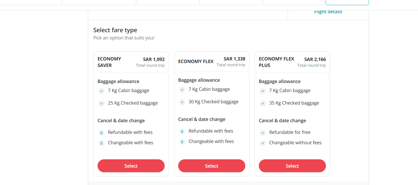 For flight, branded fare results showing details, we need to make like Almosafer.