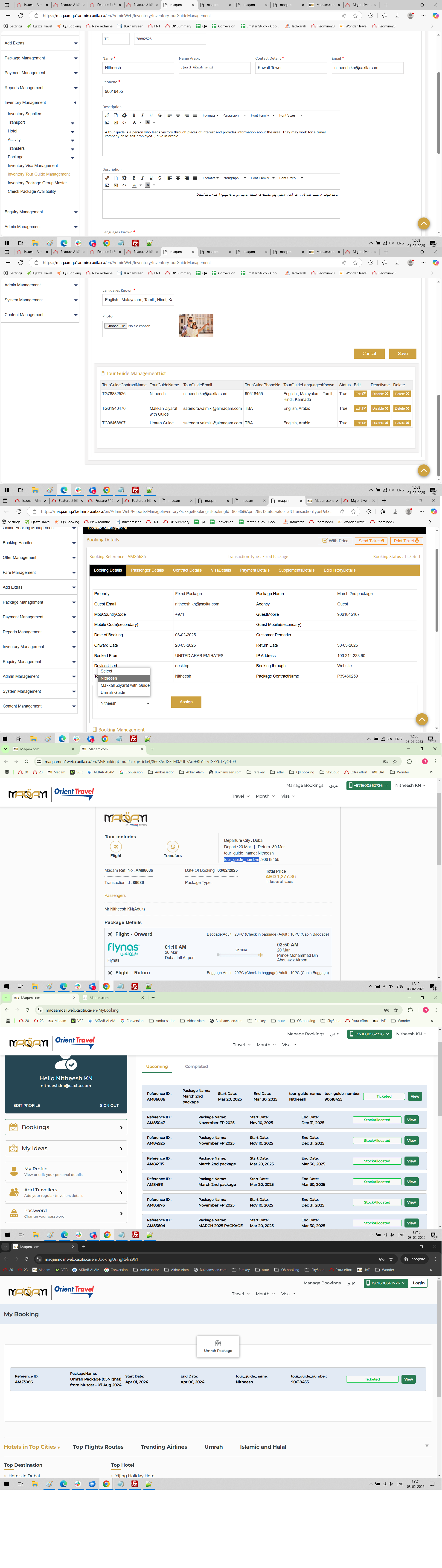 Assign tour guide to a particular package, information from backend to display on the front end including voucher and mybooking display.