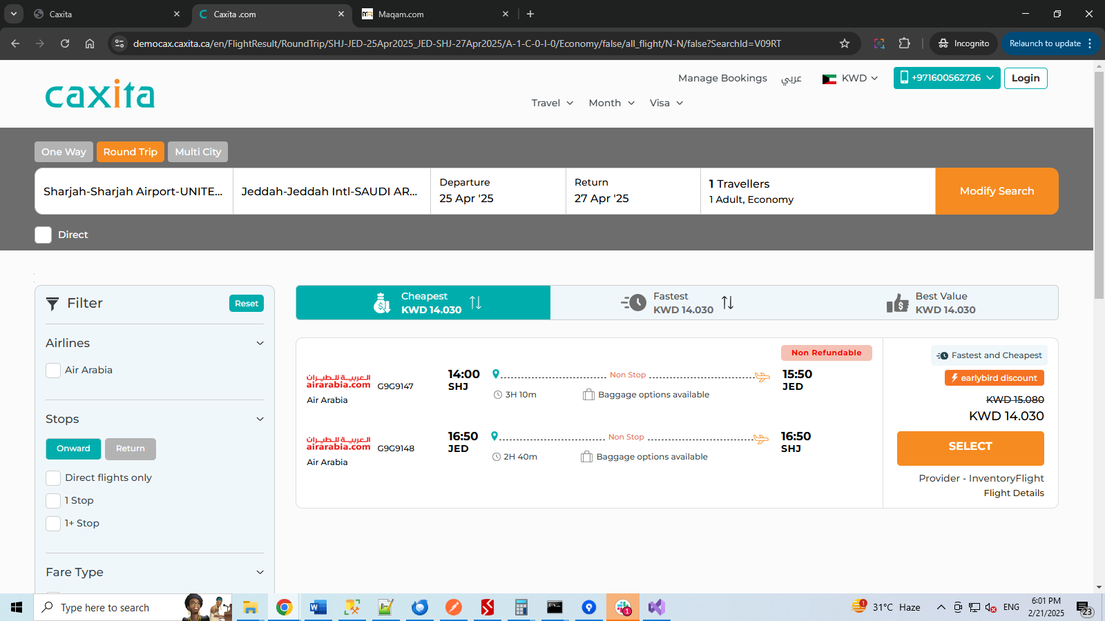 Offline inventory which I have added from the backend not getting updated in the frontend. It is not showing along with flights. Please check.