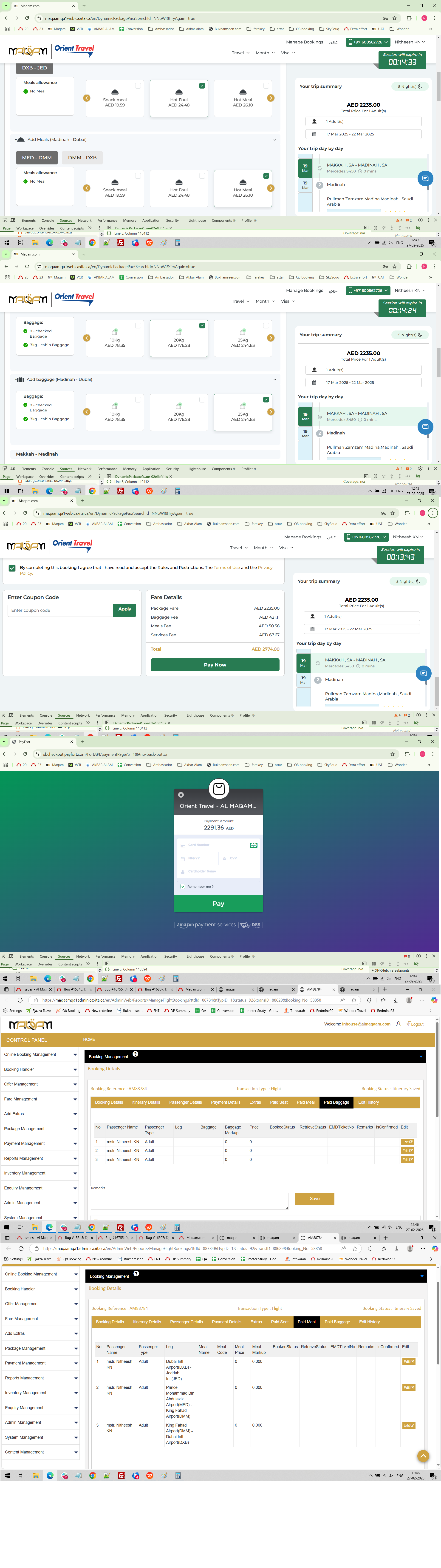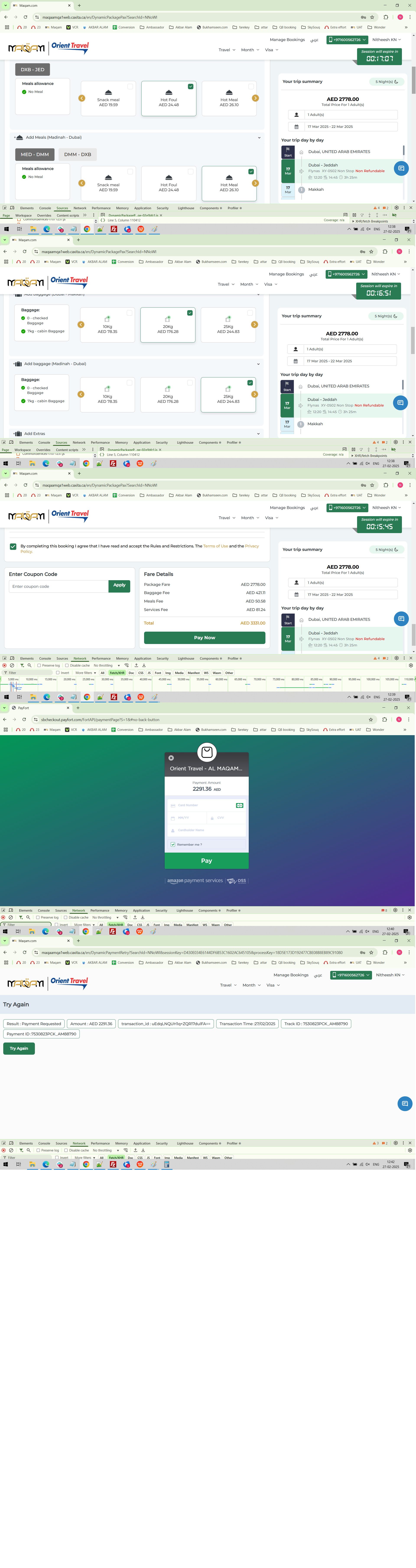 Search Dubai - Makkah - Madinah any paid meal and baggage available scenario and proceed up-to pax page. On pax page select paid meal and baggage and proceed to pay now selected meal price not reflected in PG and the selected meal and baggage not displayed in TQR. Result required in this scenario the selected meal and baggage price should be consider in pg and ticket TQR and also the meal and baggage should be displayed in ticket and tqr Issue Not Fixed - Still the meal price not passed to PG