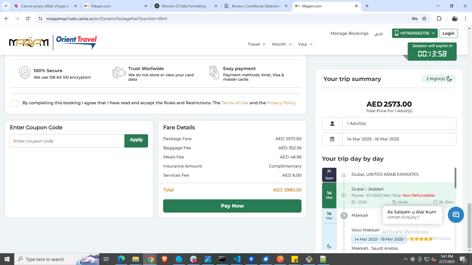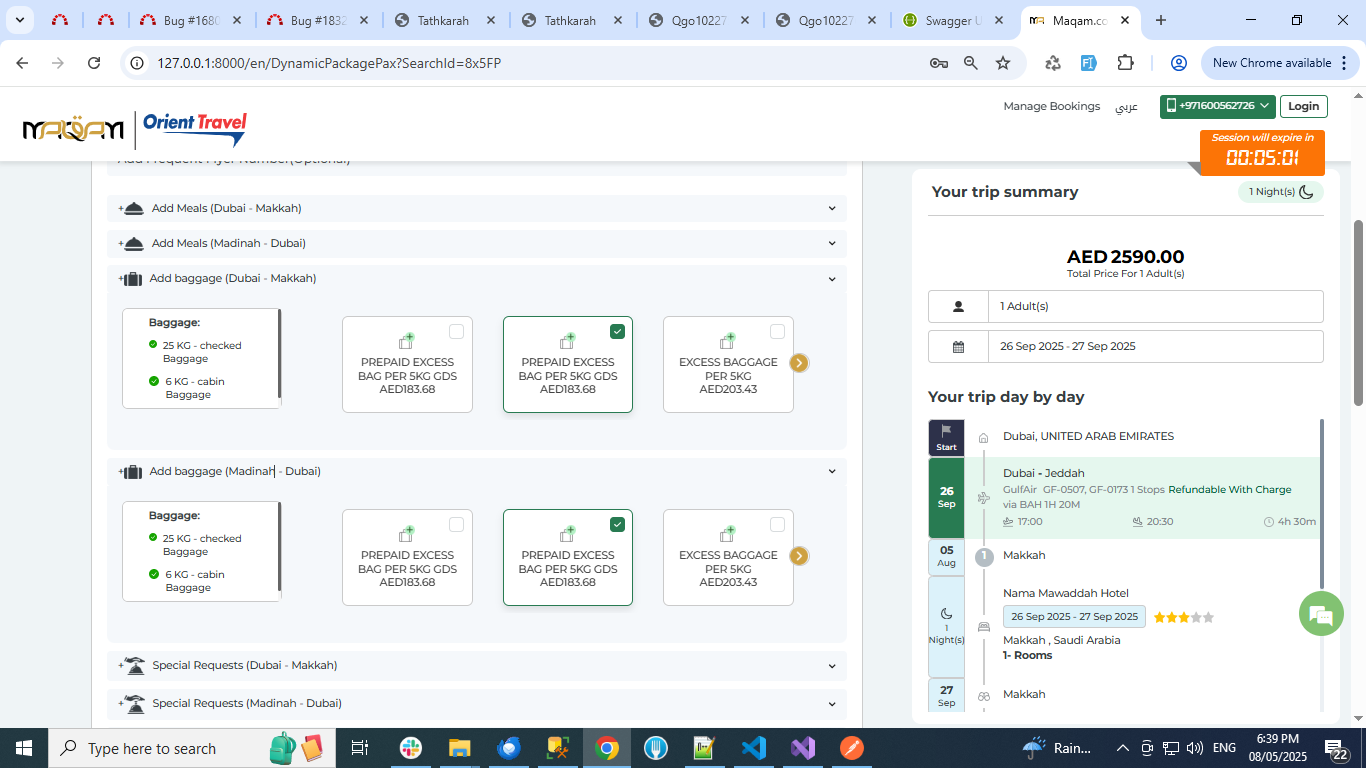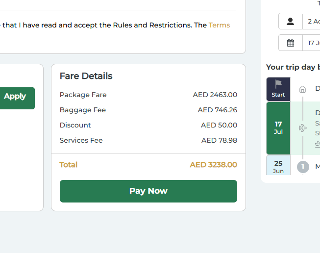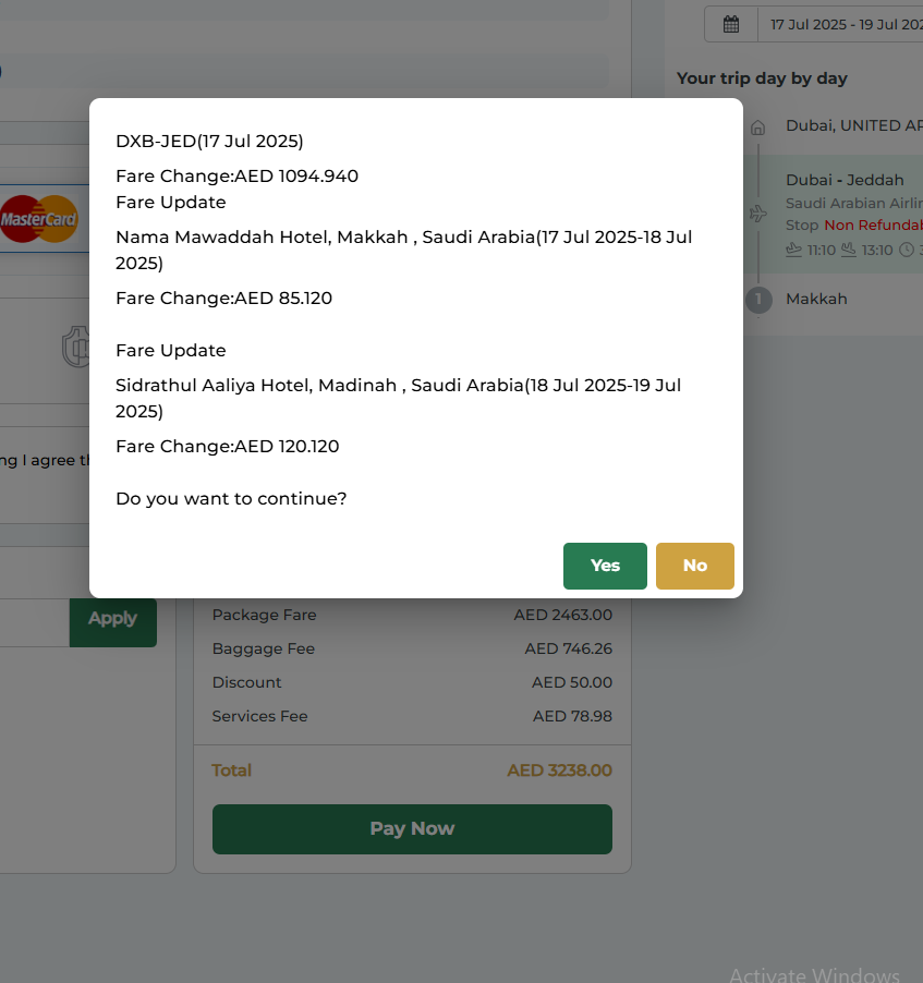 Search Dubai - Makkah - Madinah any paid meal and baggage available scenario and proceed up-to pax page. On pax page select paid meal and baggage and proceed to pay now selected meal price not reflected in PG and the selected meal and baggage not displayed in TQR. Result required in this scenario the selected meal and baggage price should be consider in pg and ticket TQR and also the meal and baggage should be displayed in ticket and tqr After getting fare updated the selected paid baggage not displayed in fare summary and the selected paid baggage price also not passed to pg, Please handle the fare update / baggage / schedule update condition also
