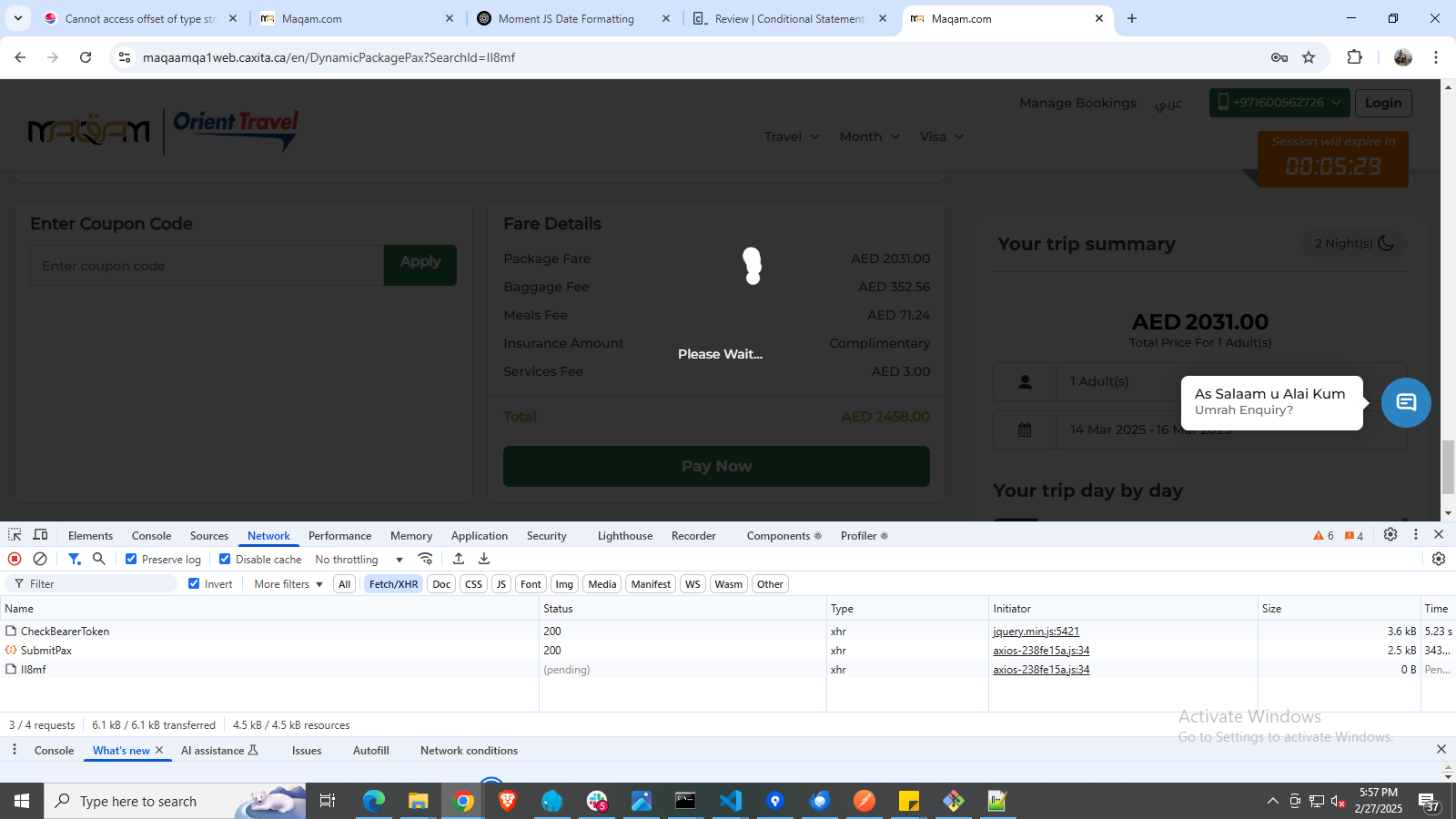 closedDynamic Package | Paid meal and Baggage Not displayed