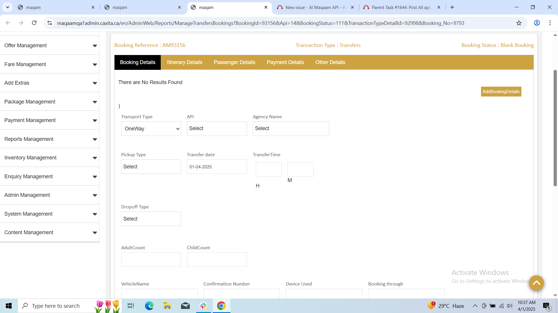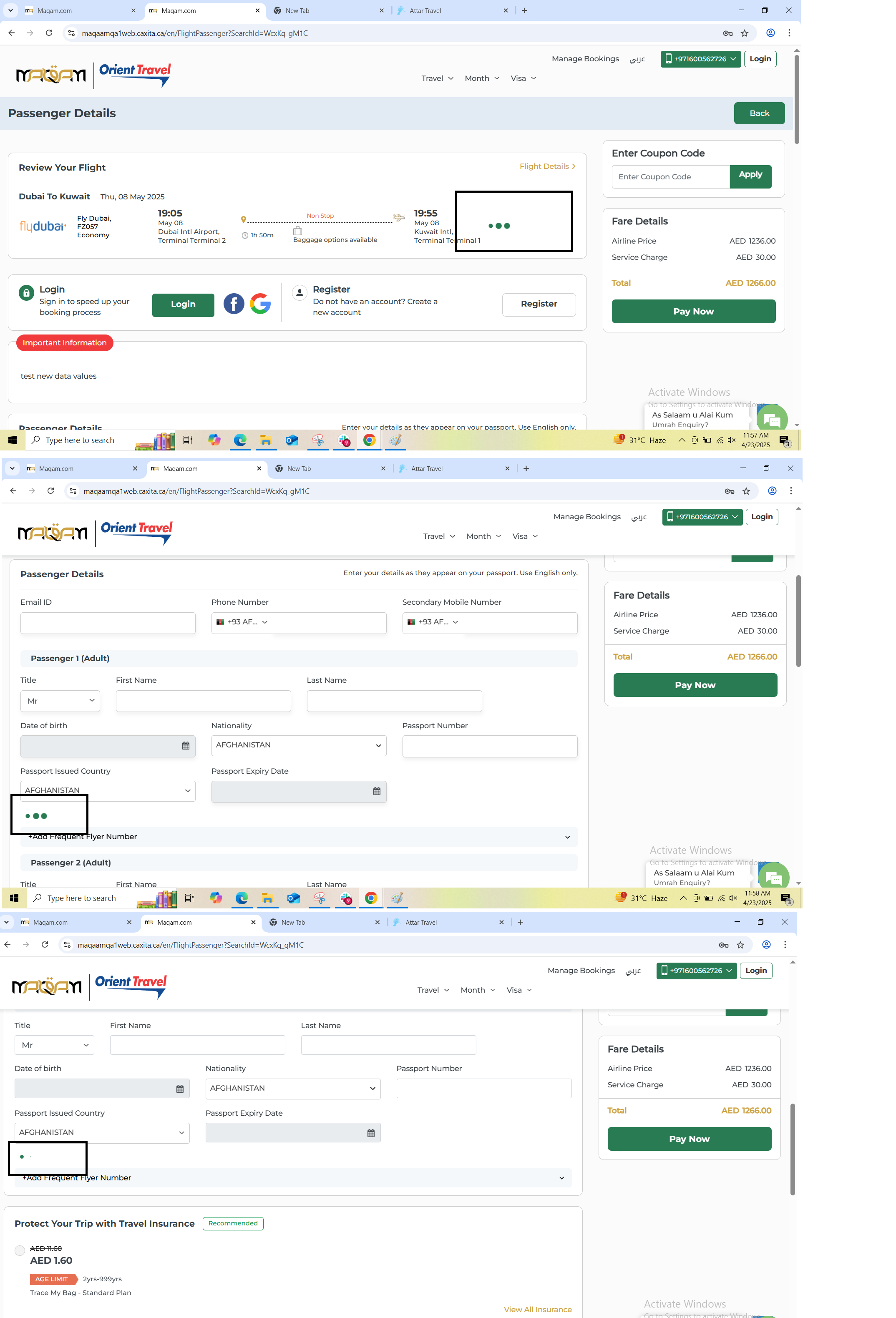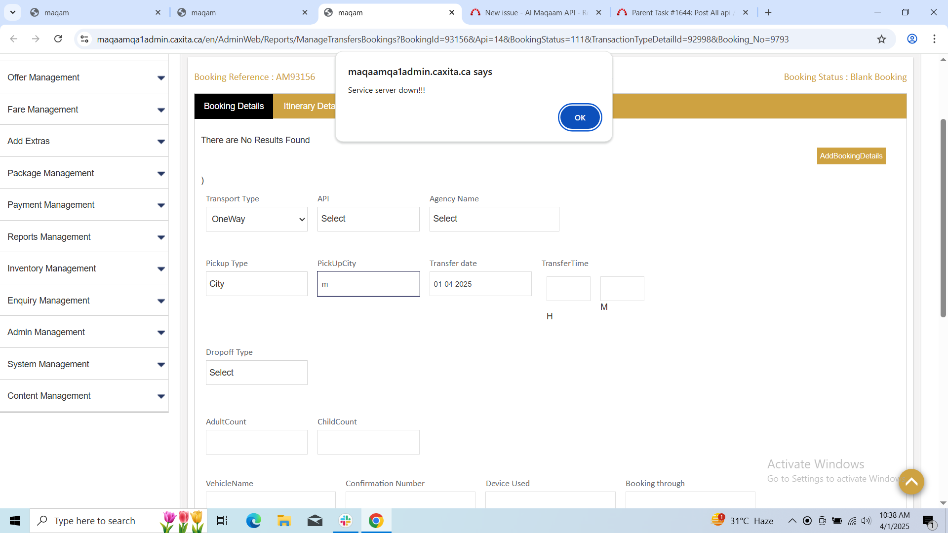 Noticed some server errors and technical issues while trying to make blank bookings in the Insurance, Activities, and Transfer modules on the Maquaam site. I’ve reported these problems to Nidheesh.