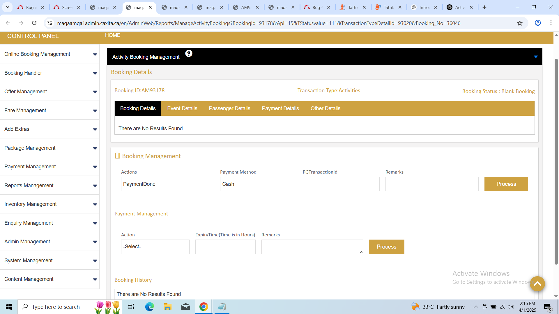 Reported issues:-1)In activity module after creating a blank booking and we add booking details and saved the saved details are not displayed there.
