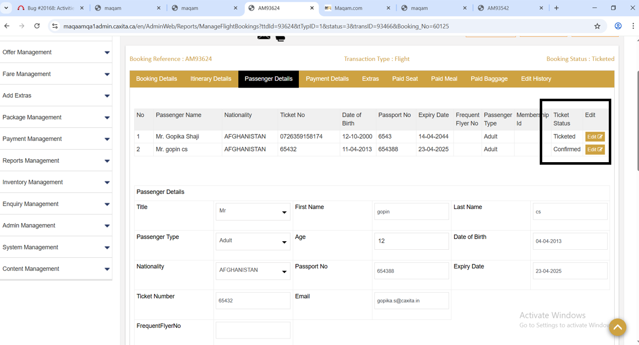 Bug #20105 |Flight| Passenger details| Ticket status not displaying correctly issue