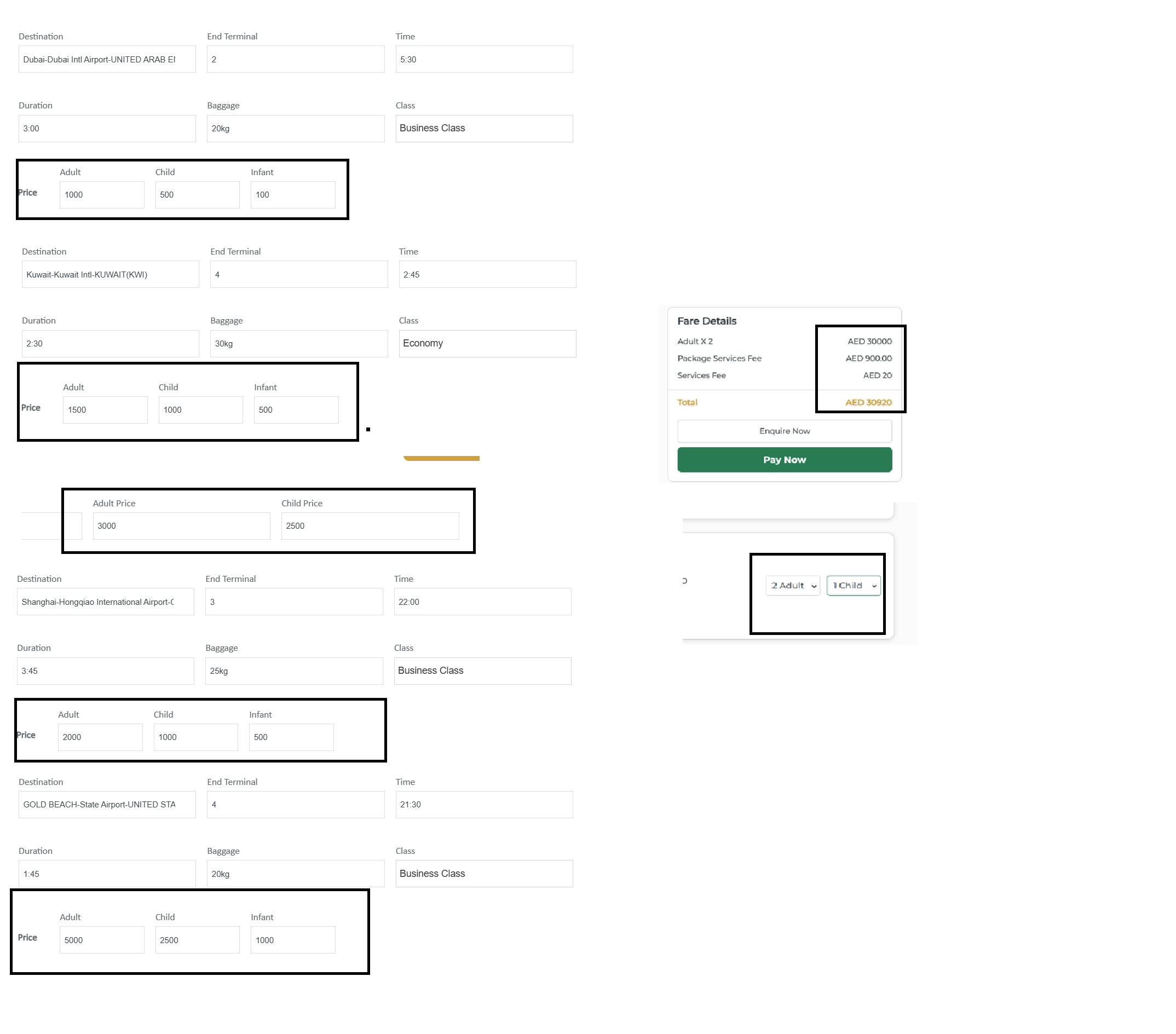 1)Applied markup based on flight number, both as a percentage and as a fixed amount