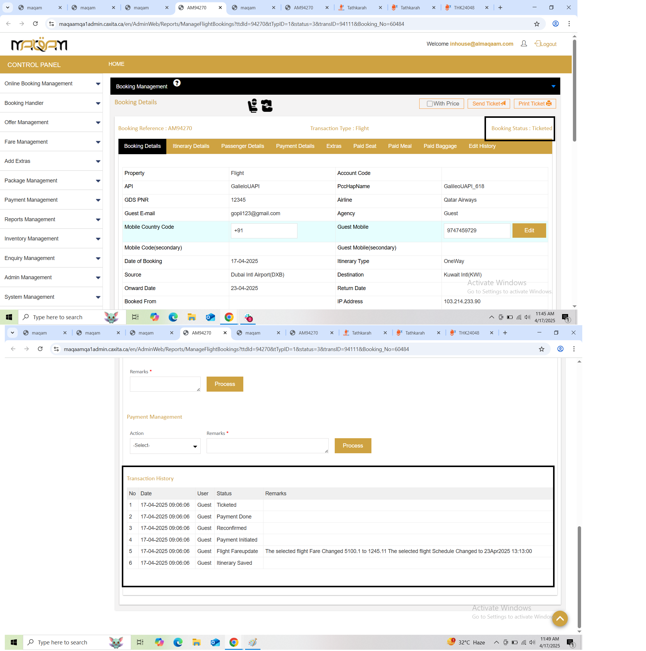 Getting familiar with the admin actions like SYNC PNR, Retrieve pnr, retrieve ticketing executed each of them with different scenarios