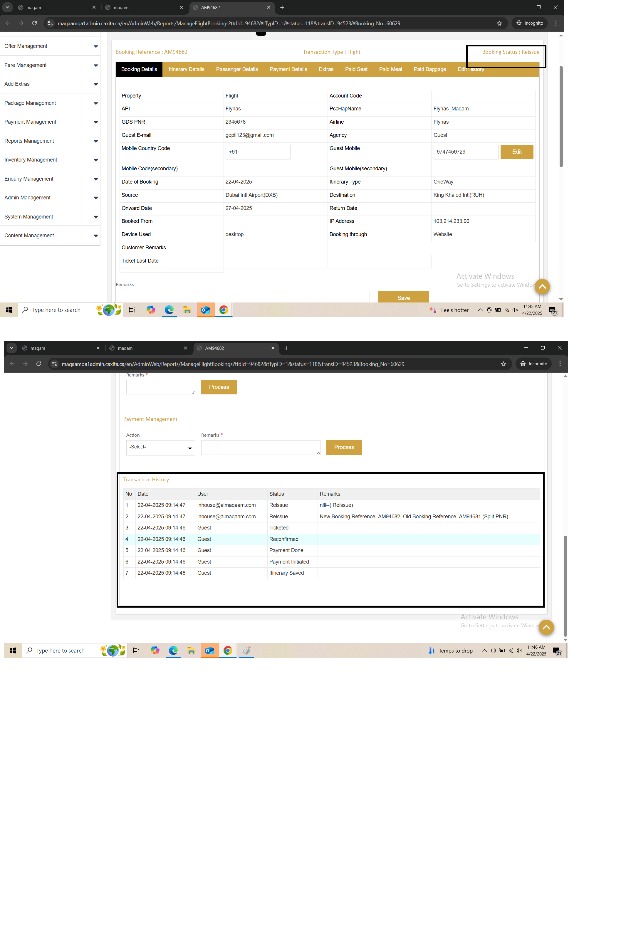 1)When a transaction is reissued, the booking status incorrectly displays as "Ticketed" instead of "Reissue".
