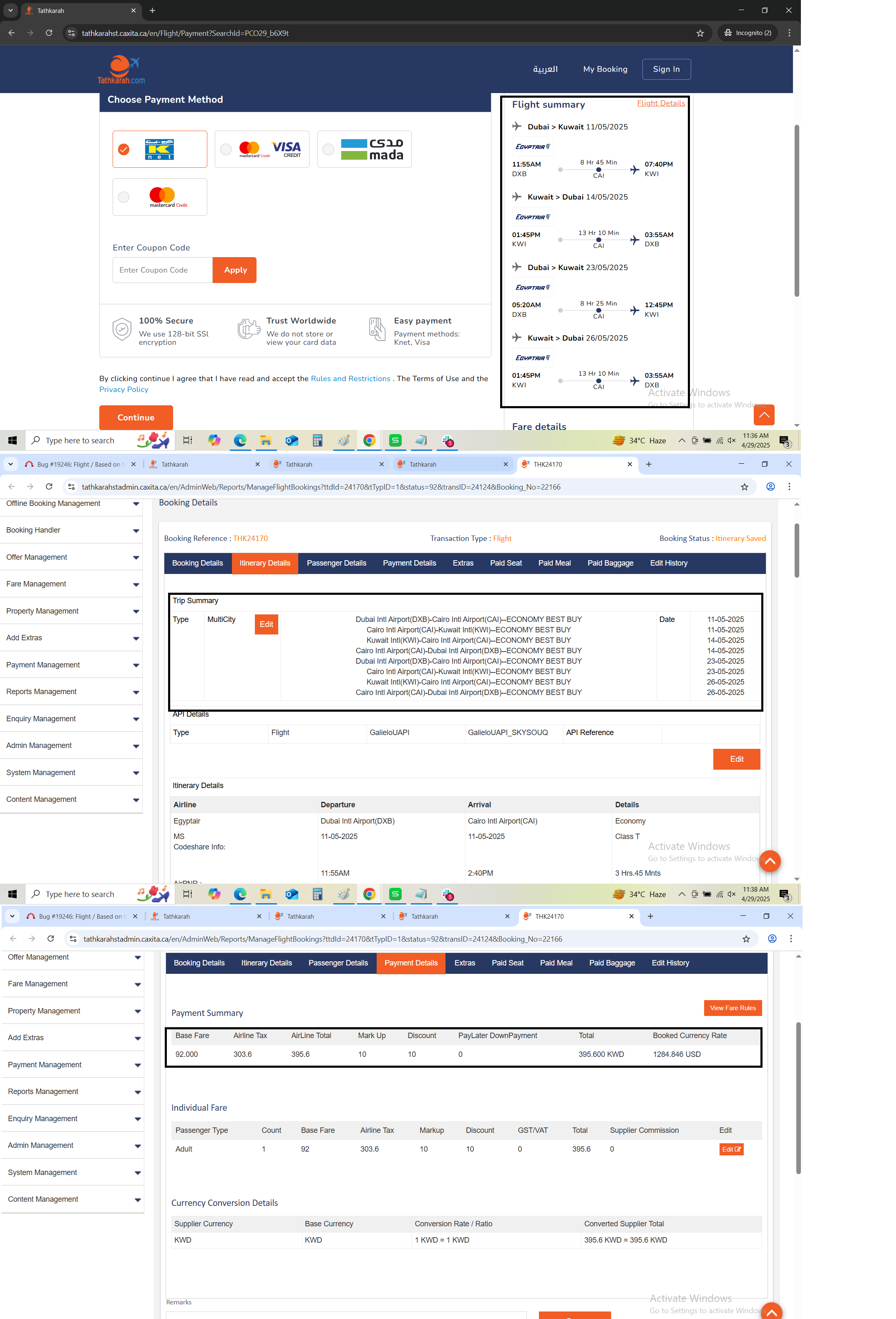 following sections :Booking Details, Passenger Details, Payment Details. The system fails to display the updates in the Edit History.