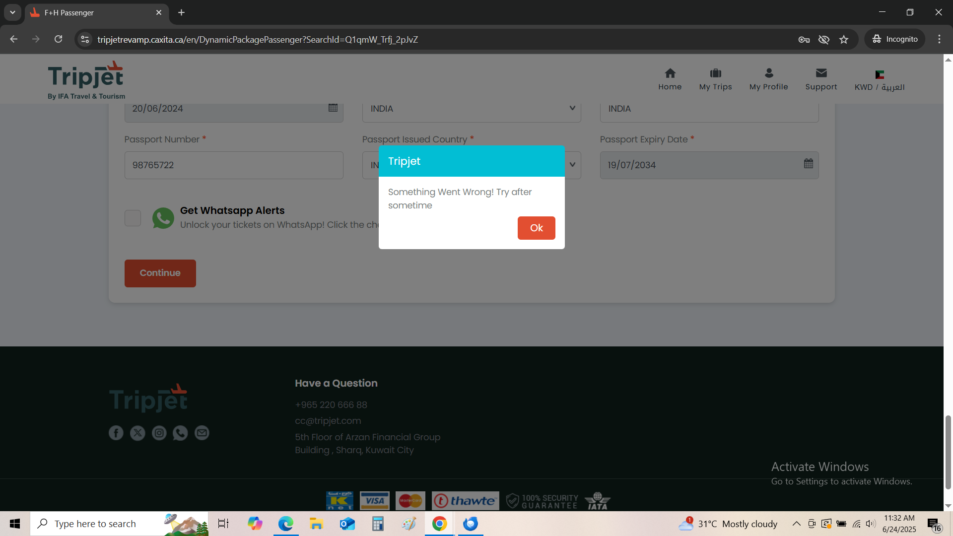 Bug #20296 Halal Holidays| Pay now | Something went wrong issue
