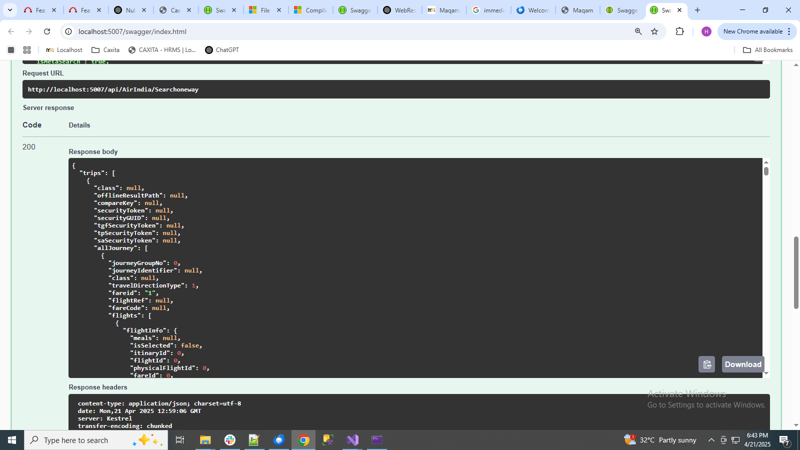Got the trip results for both Oneway and Roundtrip using both AirIndiaController and FlightController.
