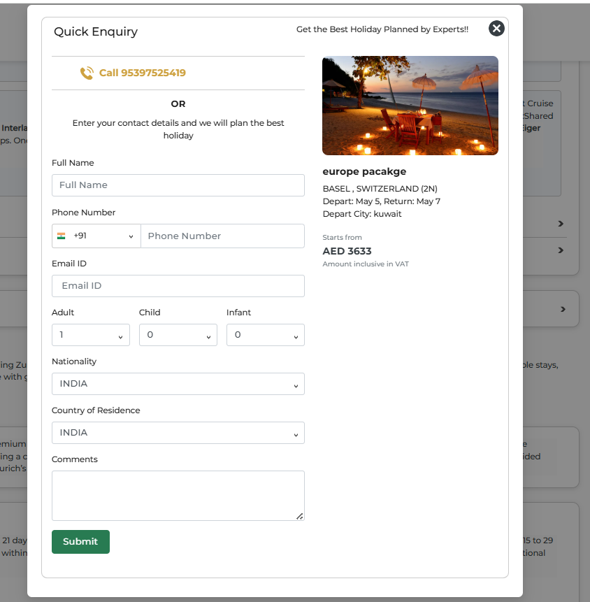 In the enquiry form, need to mention no of pax and the price mentioned is for how many pax to be mentioned. Package code needed in enquiry form. - Keep all the days section open and if a customer wants to close, they can close it so keep drop down button to close.