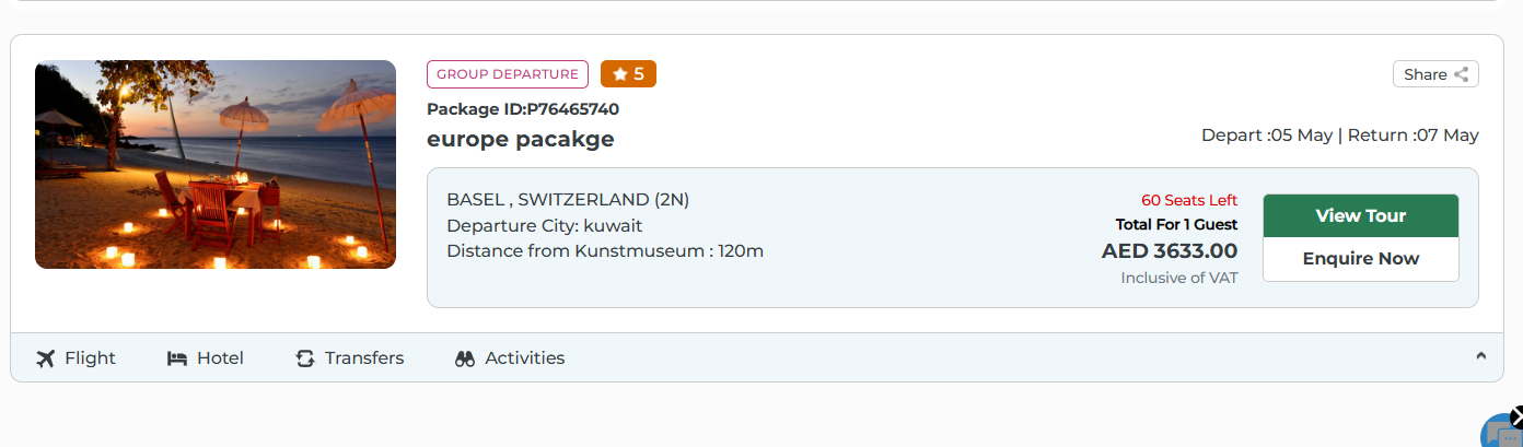 - Merge Book & Enquire Tabs: Replace the separate "Book" and "Enquire" buttons with a single "View" button that directs users to the package details page.