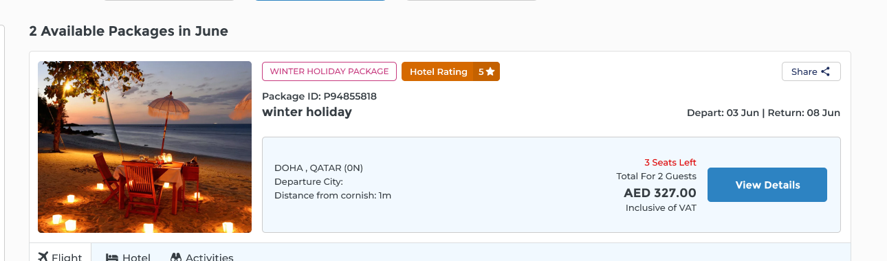 7. If in hotel, breakfast is included need to show that in the results page hotel section.