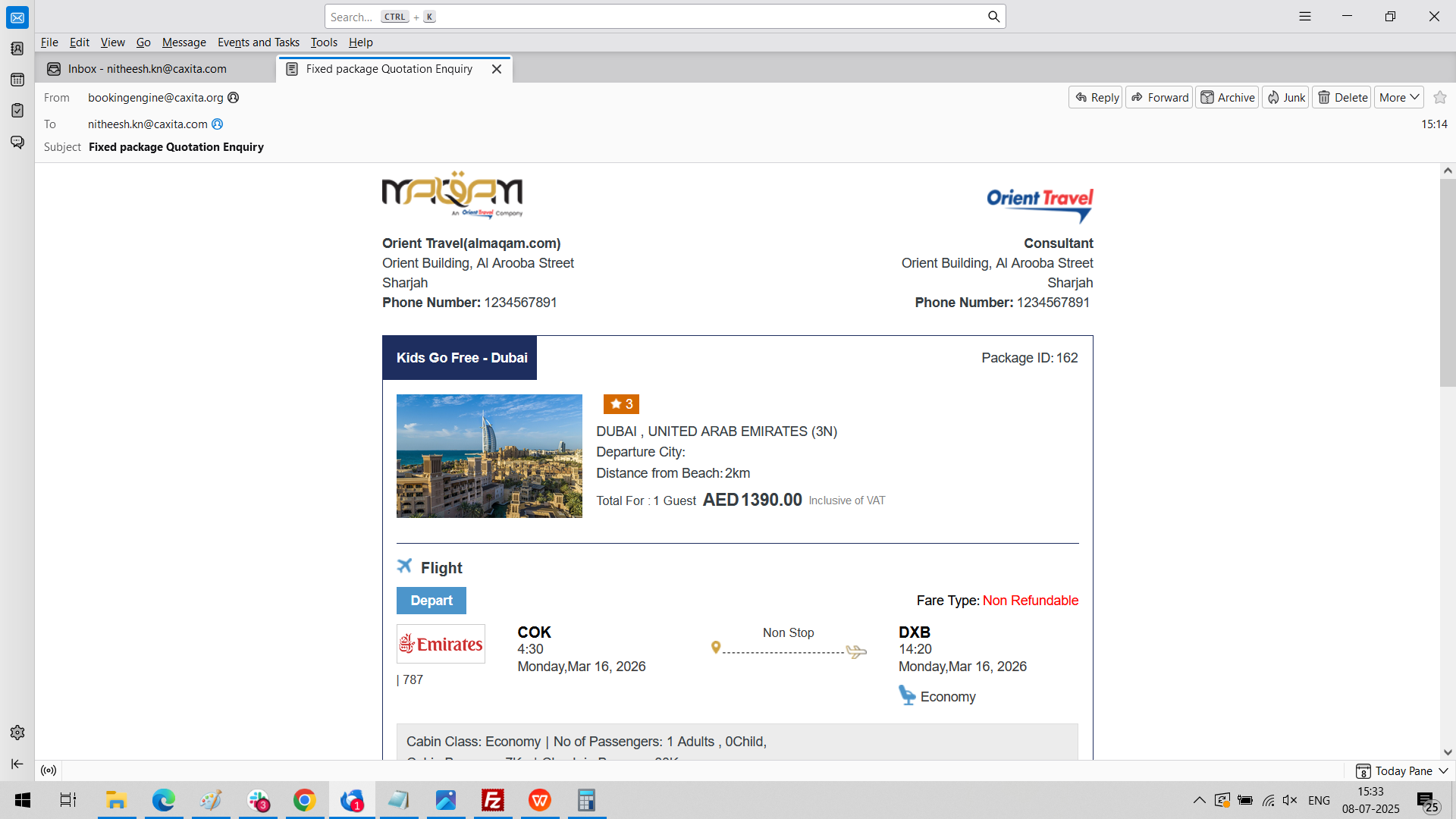 6. Quotation enquiry mail package id displayed wrong - please show actual package id