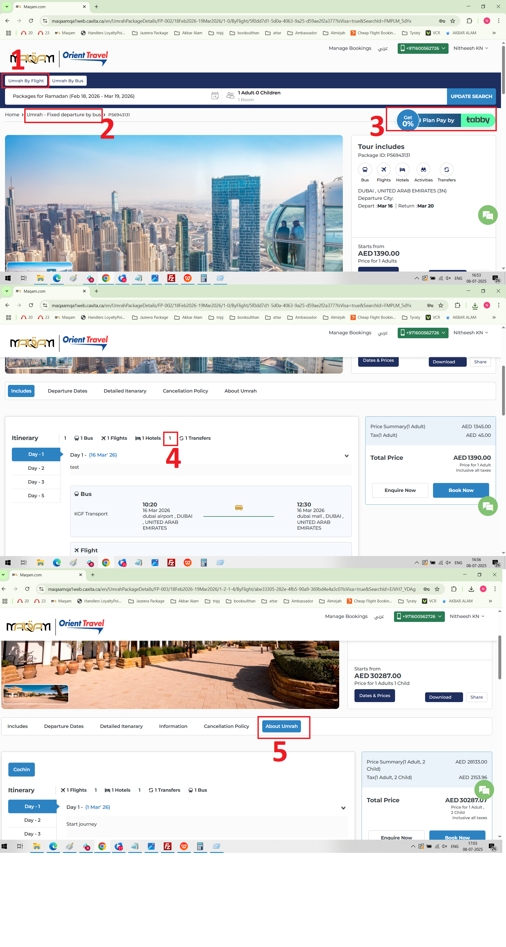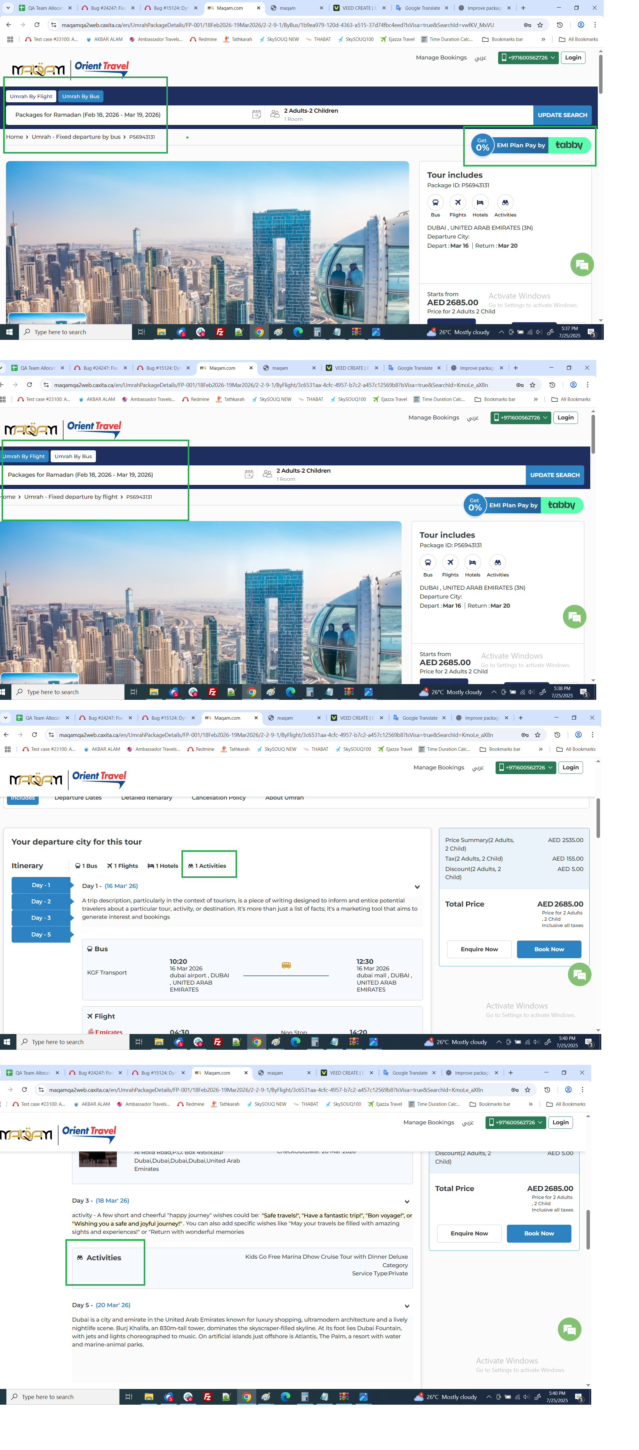 5. While click about it's not scrolled to about section Now scrolled to about section half middle section - The About Section Title should be displayed while click About umrah Now it's displayed cancellation policy section not proper About section*3 Please fix the issue in all Tab Links scroll & Right side date and price section also- *Not fixed Attached evidence