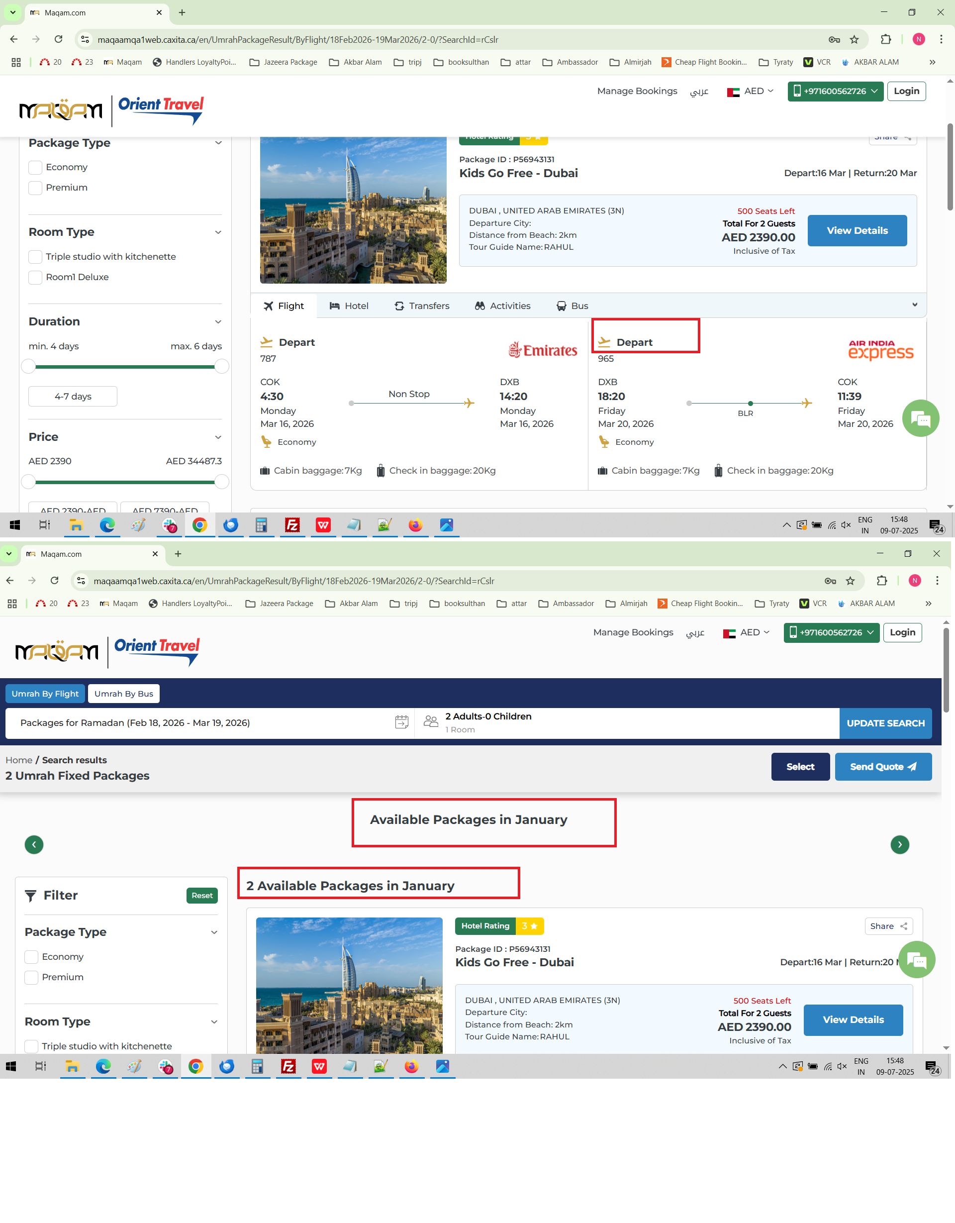 1) Fixed package result page package available month displayed wrong - please show actual month