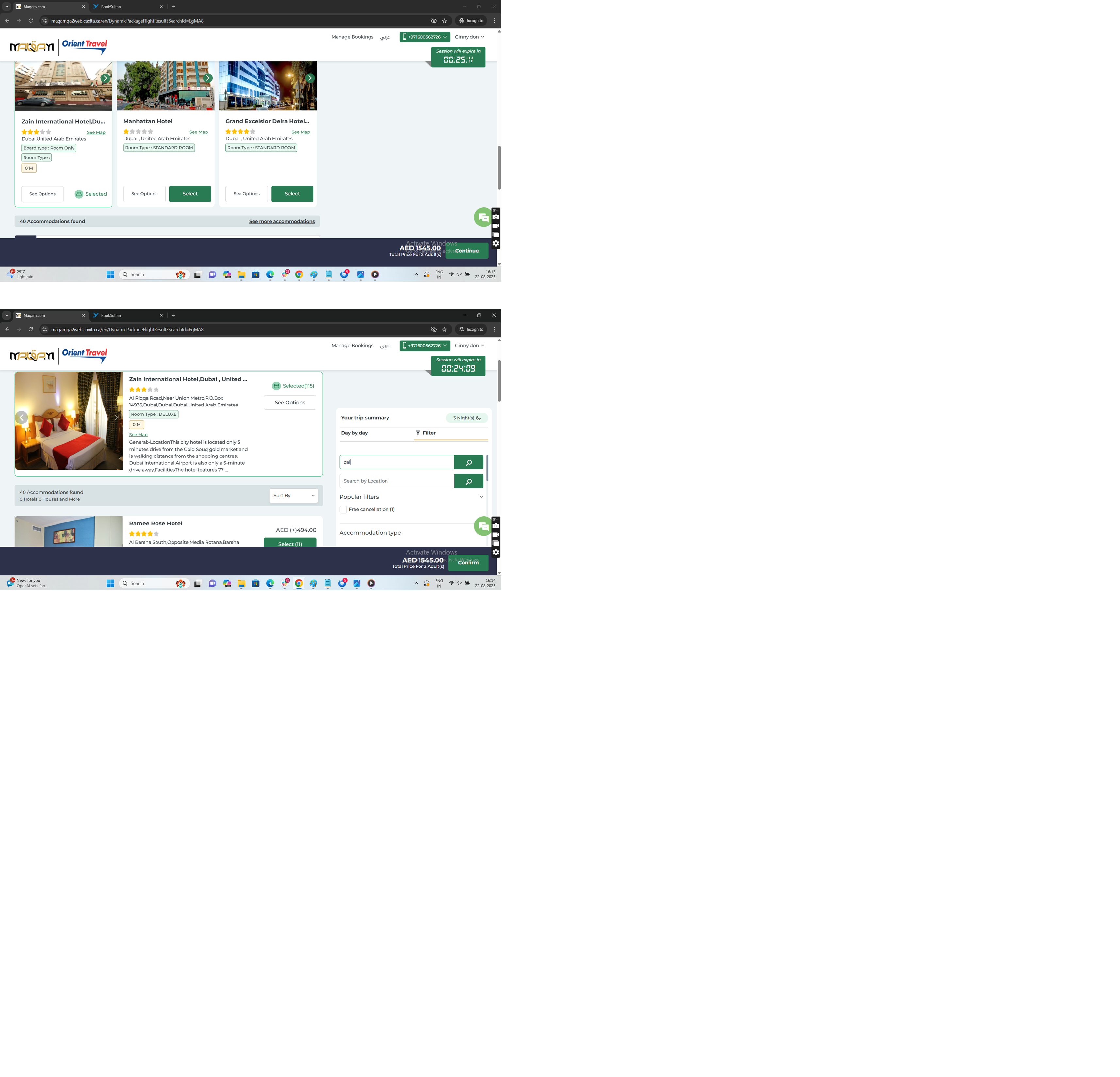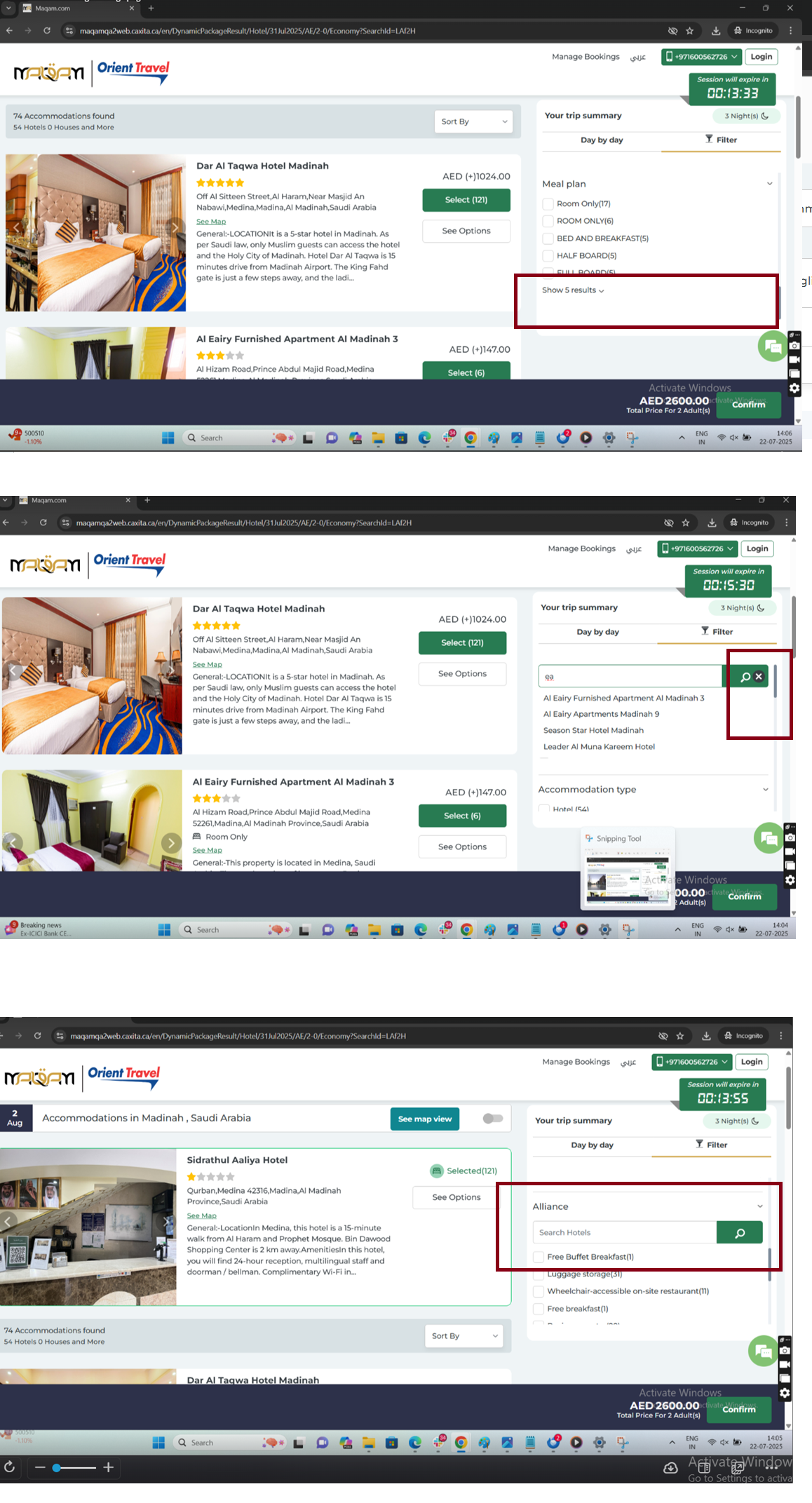 Dynamic package | Hotel result page related issues