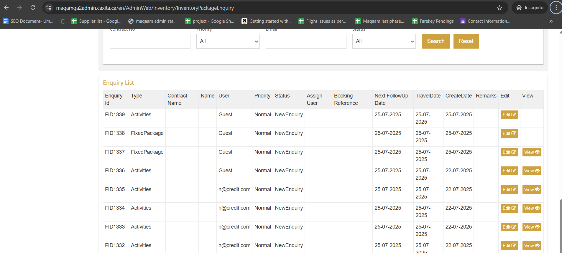 1. The quotation I gave for transfer not getting saved in the admin as transfer instead it is showing as activity in the enquiry management.