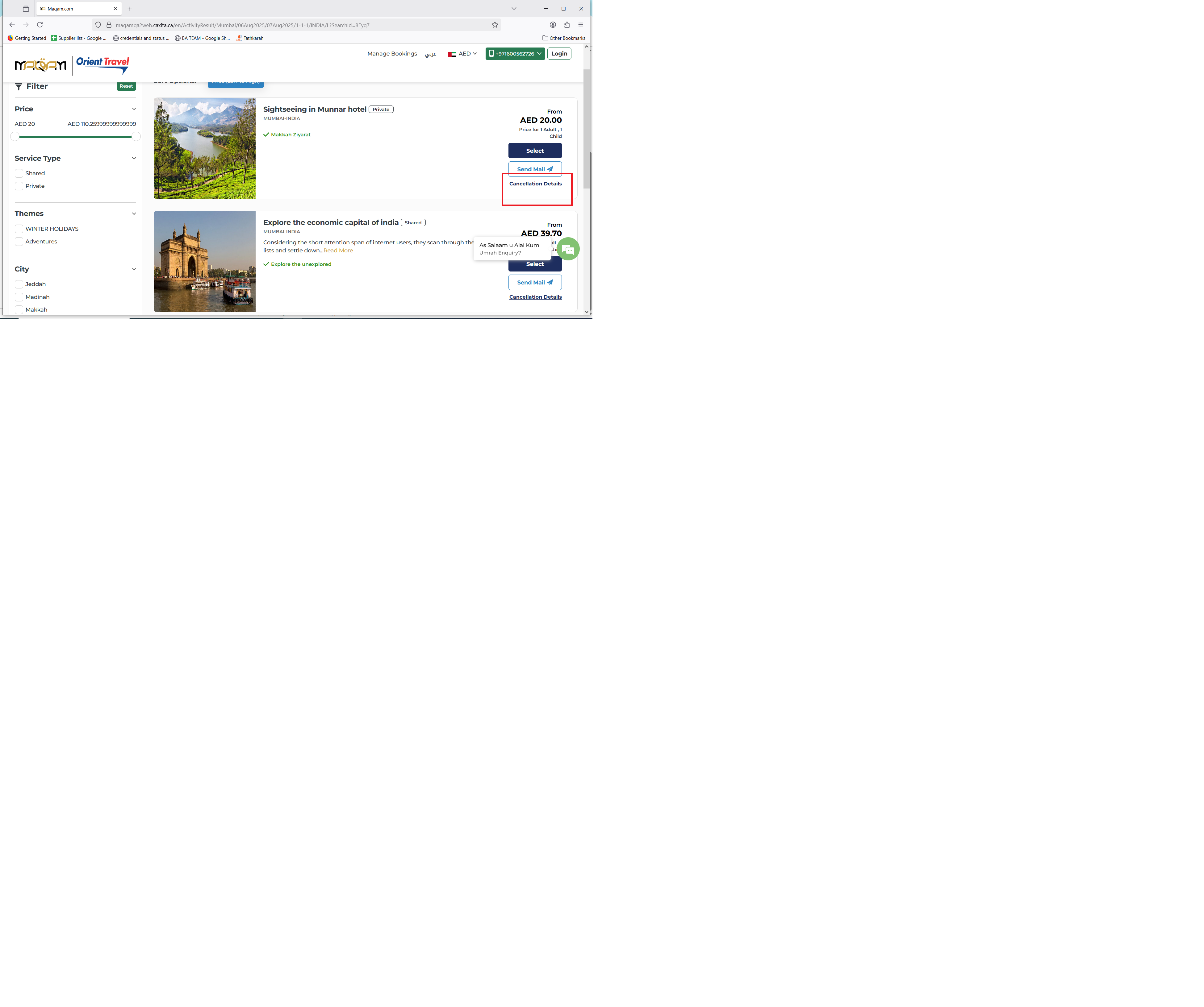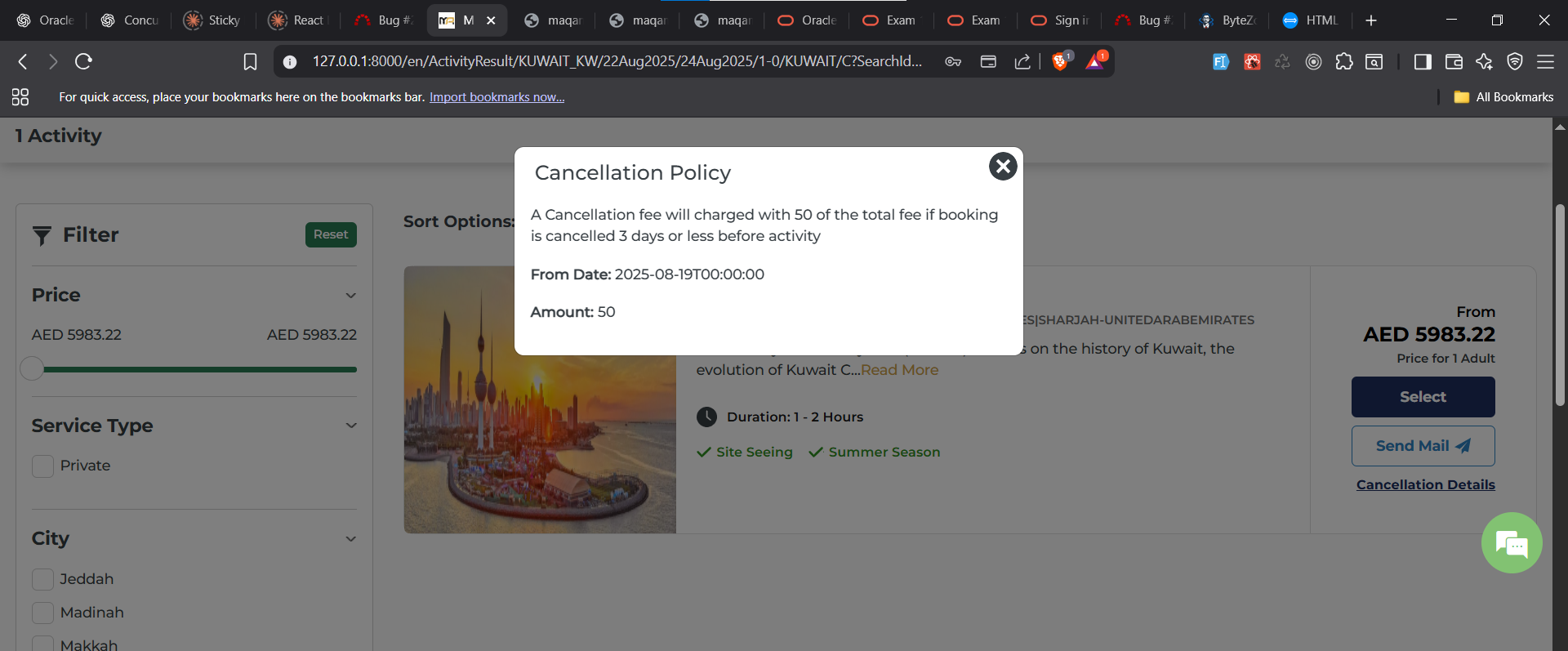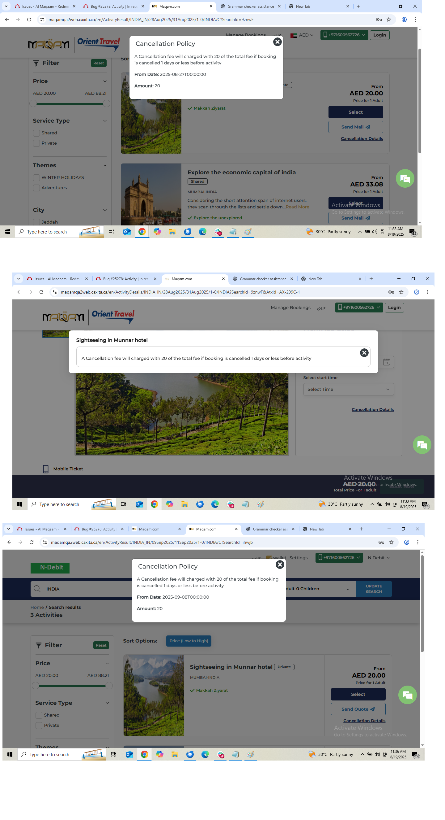 closedActivity | In result page the cancellation policy link is not working