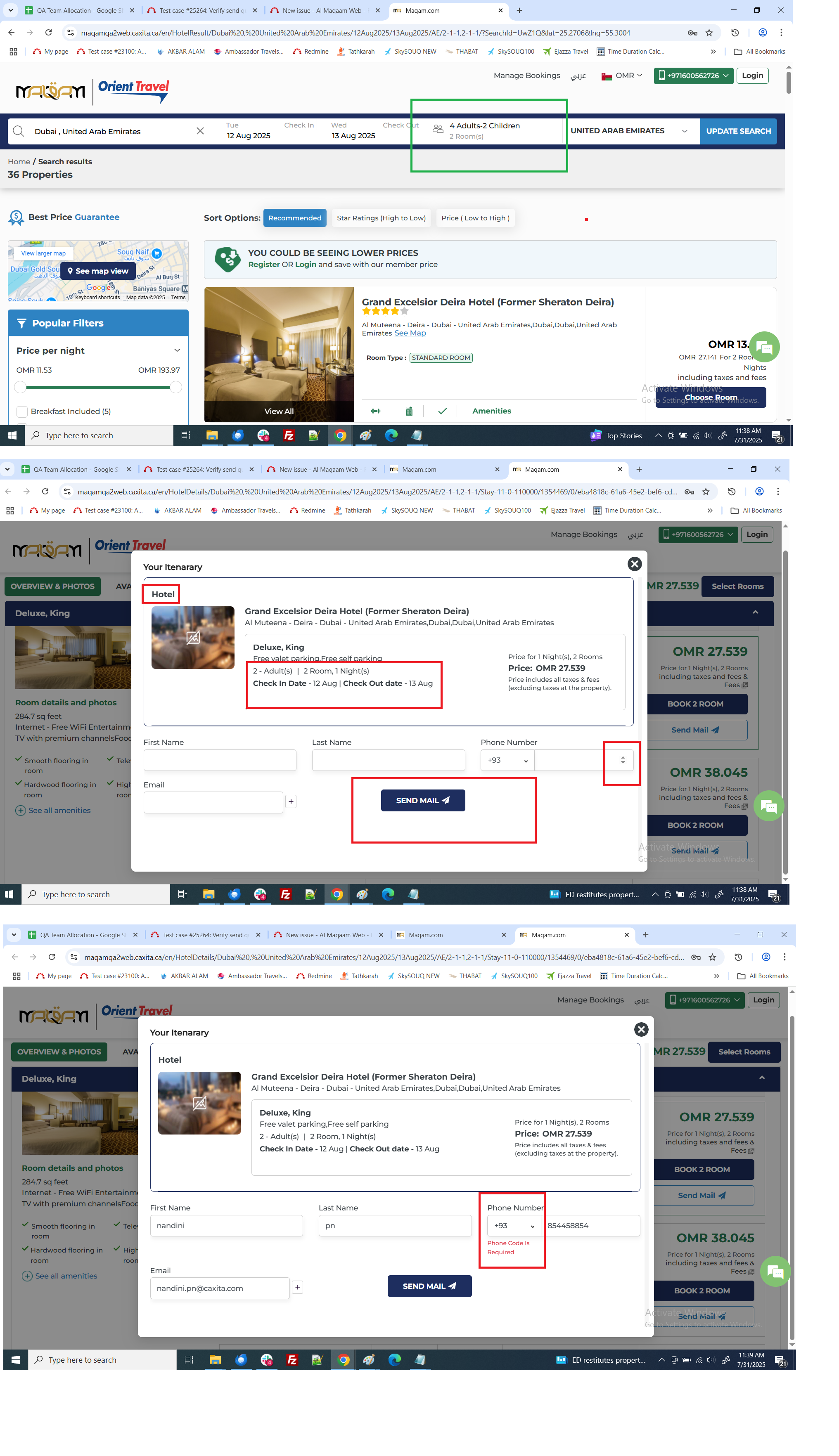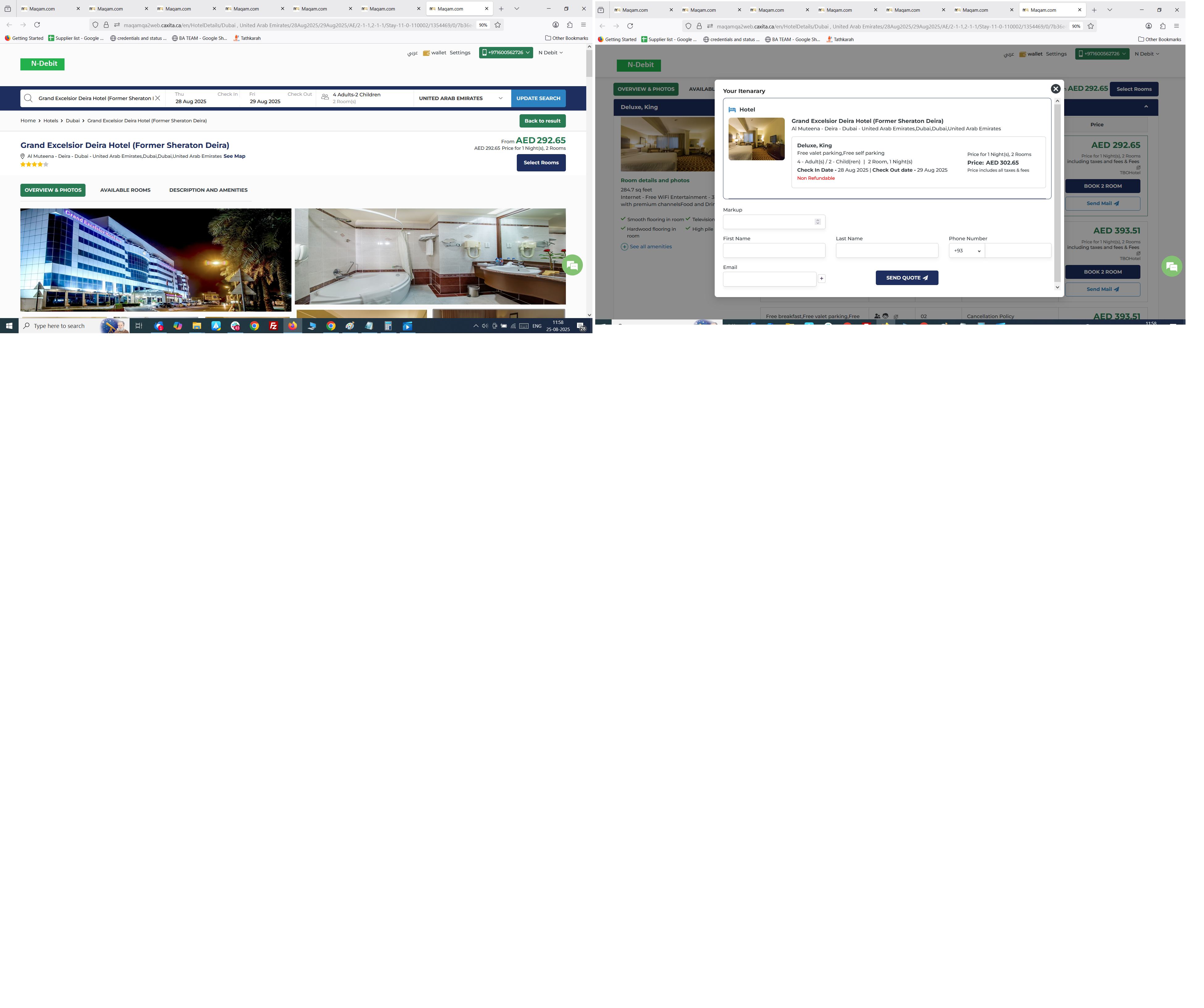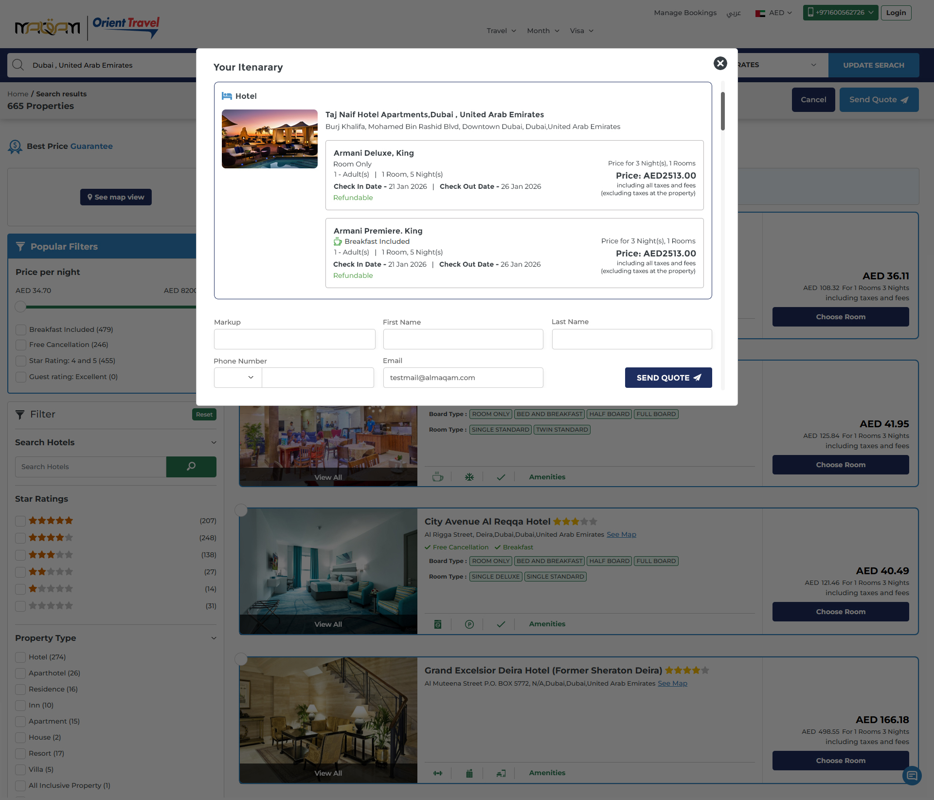 Search a hotel and proceed to hotel details page . Select the one room and sent Quotation mail to the customer mail. Some issue found in Hotel details pop up.