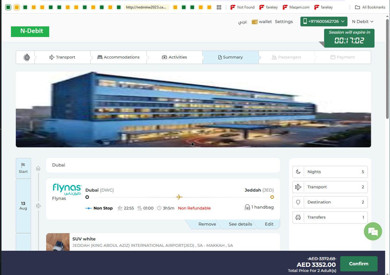 1. Search Dynamic package Dubai - Makkah - Madinah proceed up-to flight result page, and continue to summary page while chnange hotel or activity now summary page displayed as broken. please fix the issue and make sure all default flight, hotel, domestic transfer should be displayed on summary page