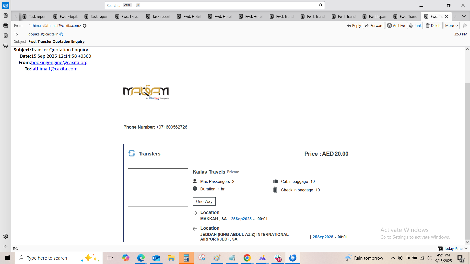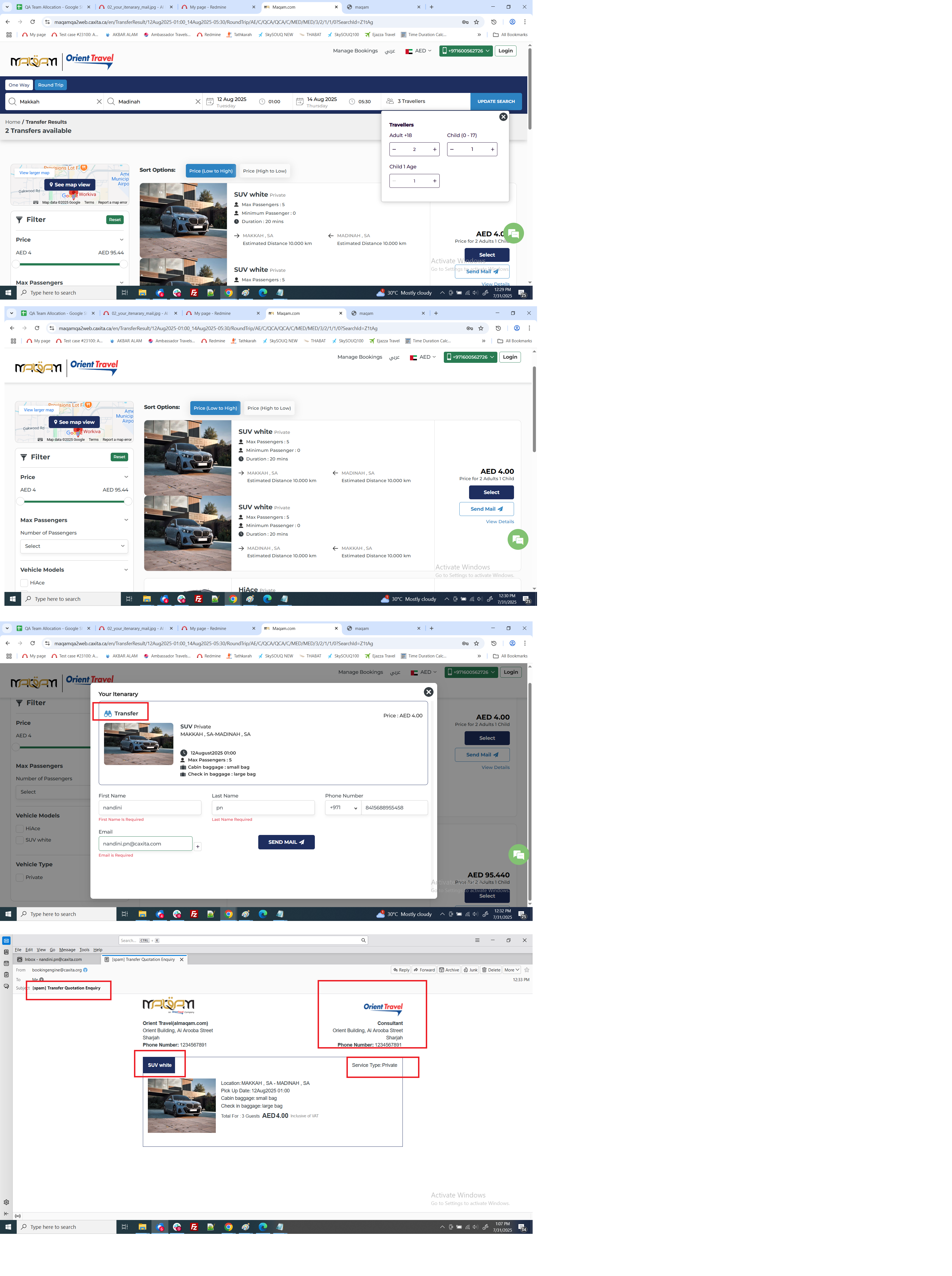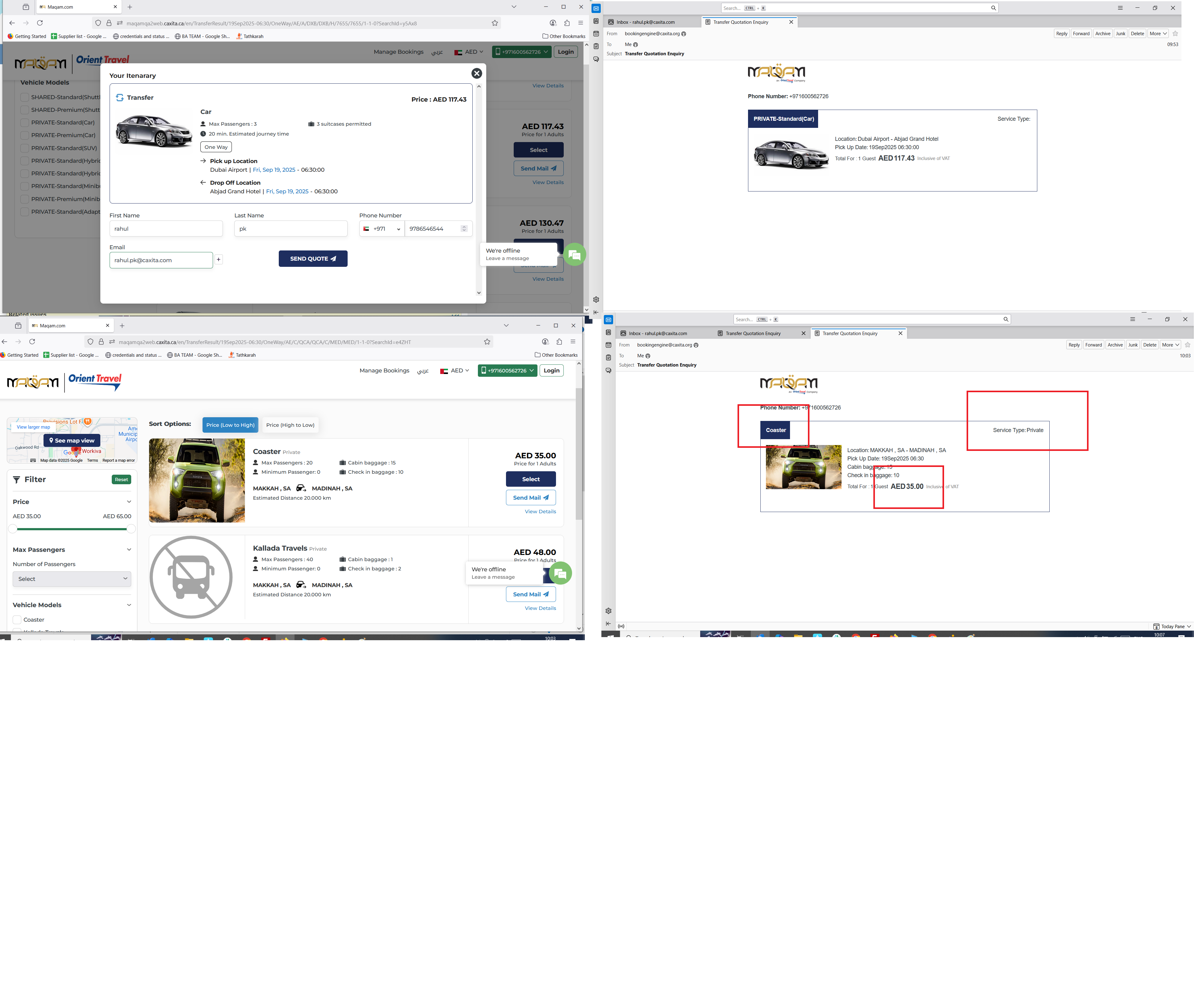 Search a transfer and proceed to transfer result page and sent Quotation mail to the customer mail. Some issue found in mail.