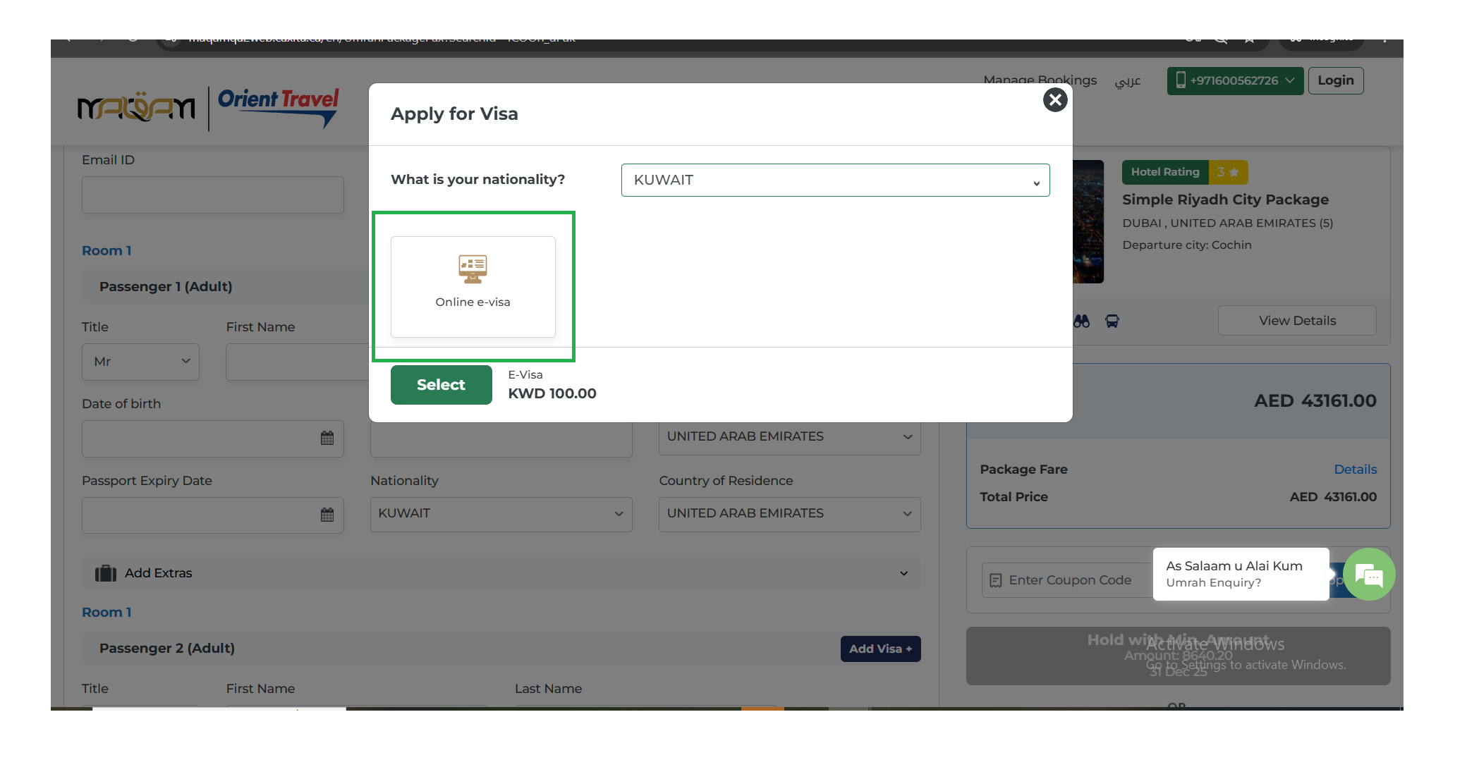 Search any fixed package upto pax page.In the pax page select visa and visa popup appears at this time in the online visa text box the left border is missing.please correct this allignement issue.