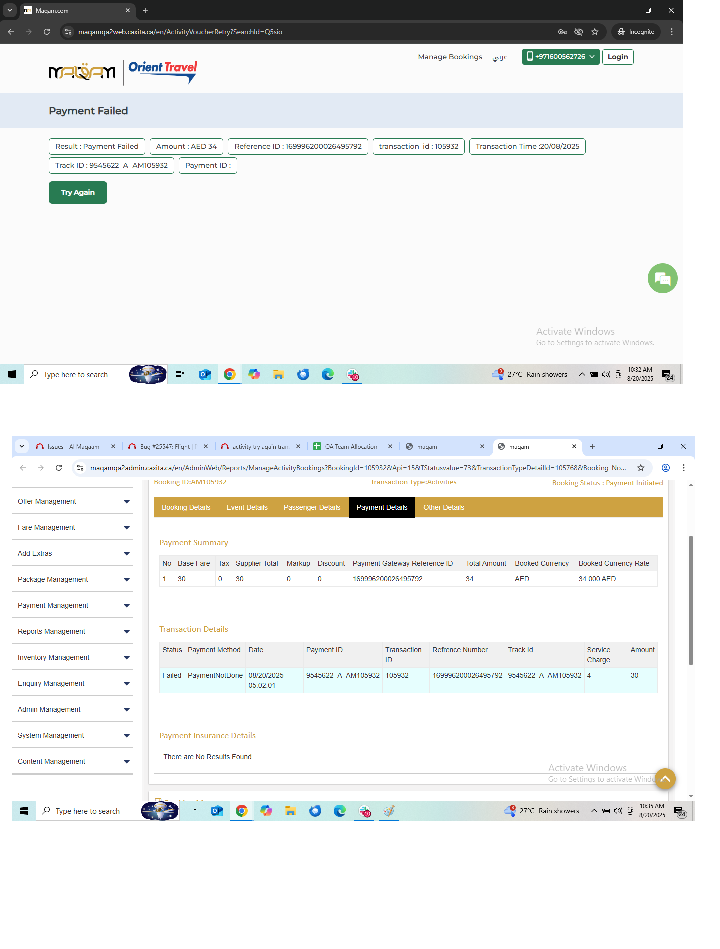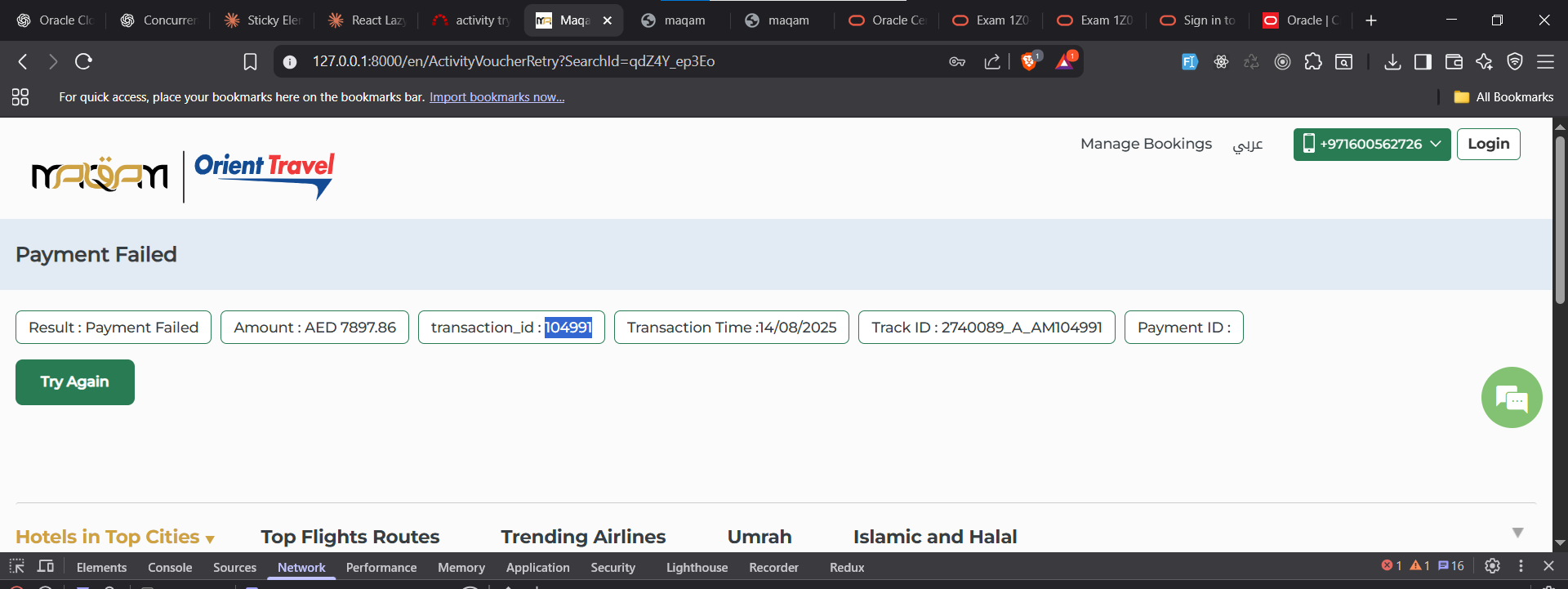 Searched an activity and proceeded to PG then cancelled from PG at this time in try again page the transaction id shown is wrong. please show the correct transaction id in that section.
