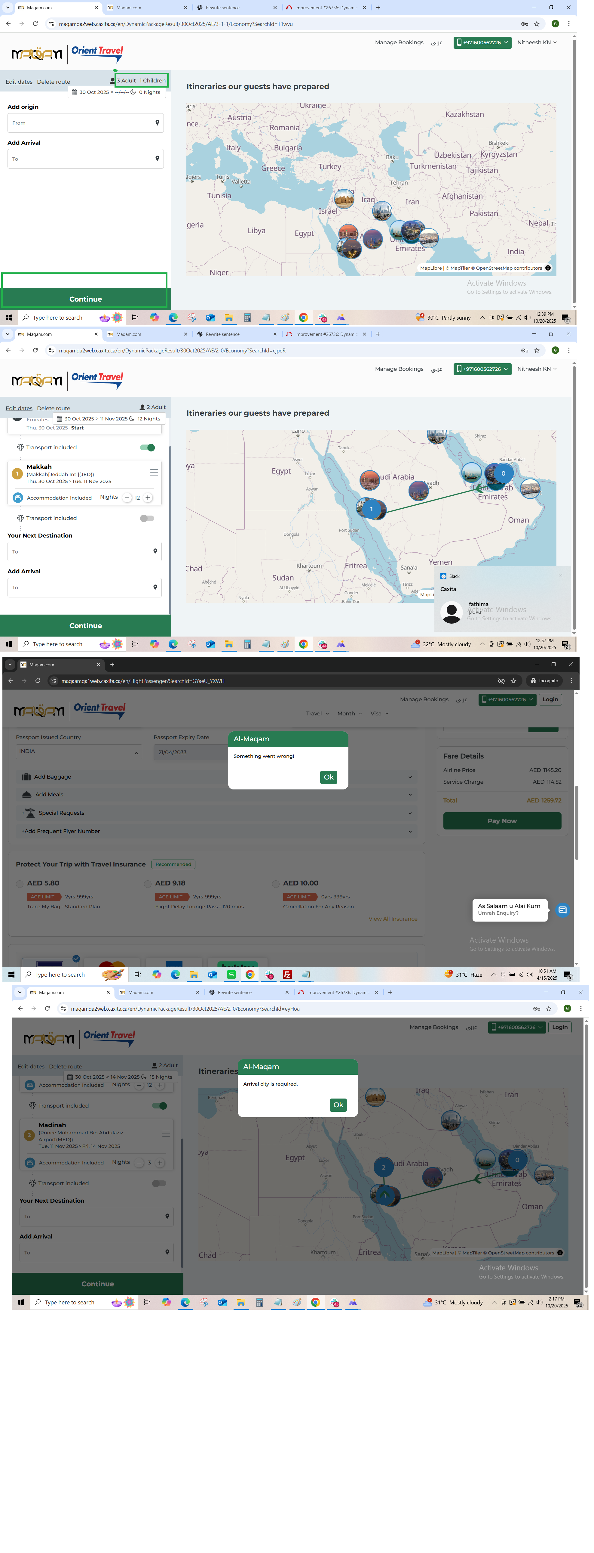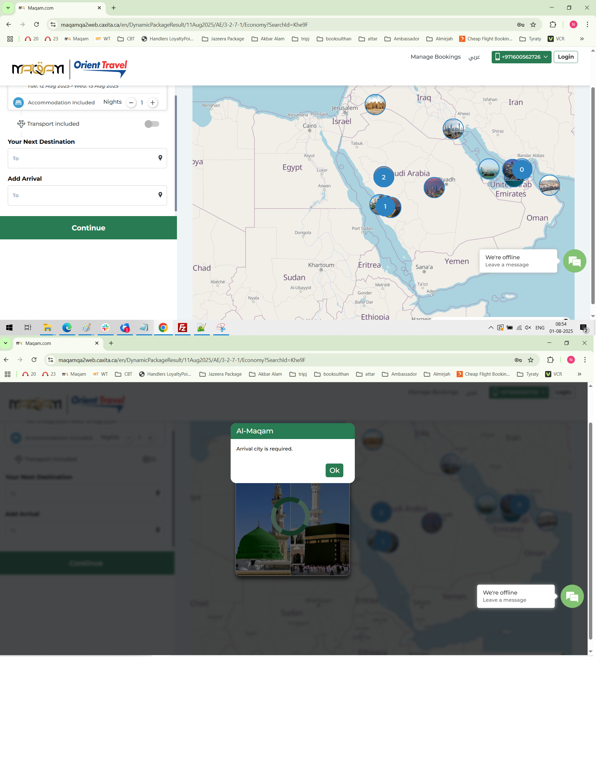 4. On search panel enter dubai - makkkaha - madinah & last destination Dubai auto filled now am removed dubai then tried to search at this time validation displayed. result required in this scenario the user can able to search & the last destination should be auto filled while search