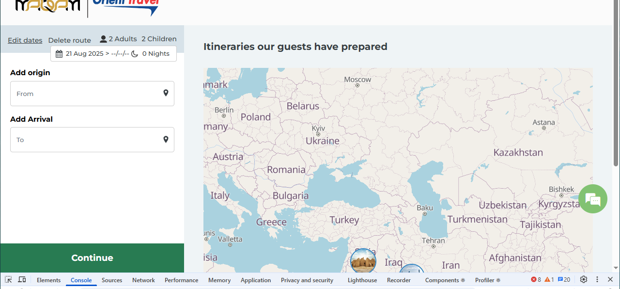 4. No need to fix the issue (As per the design user can search without a destination (or remove the roundtrip))