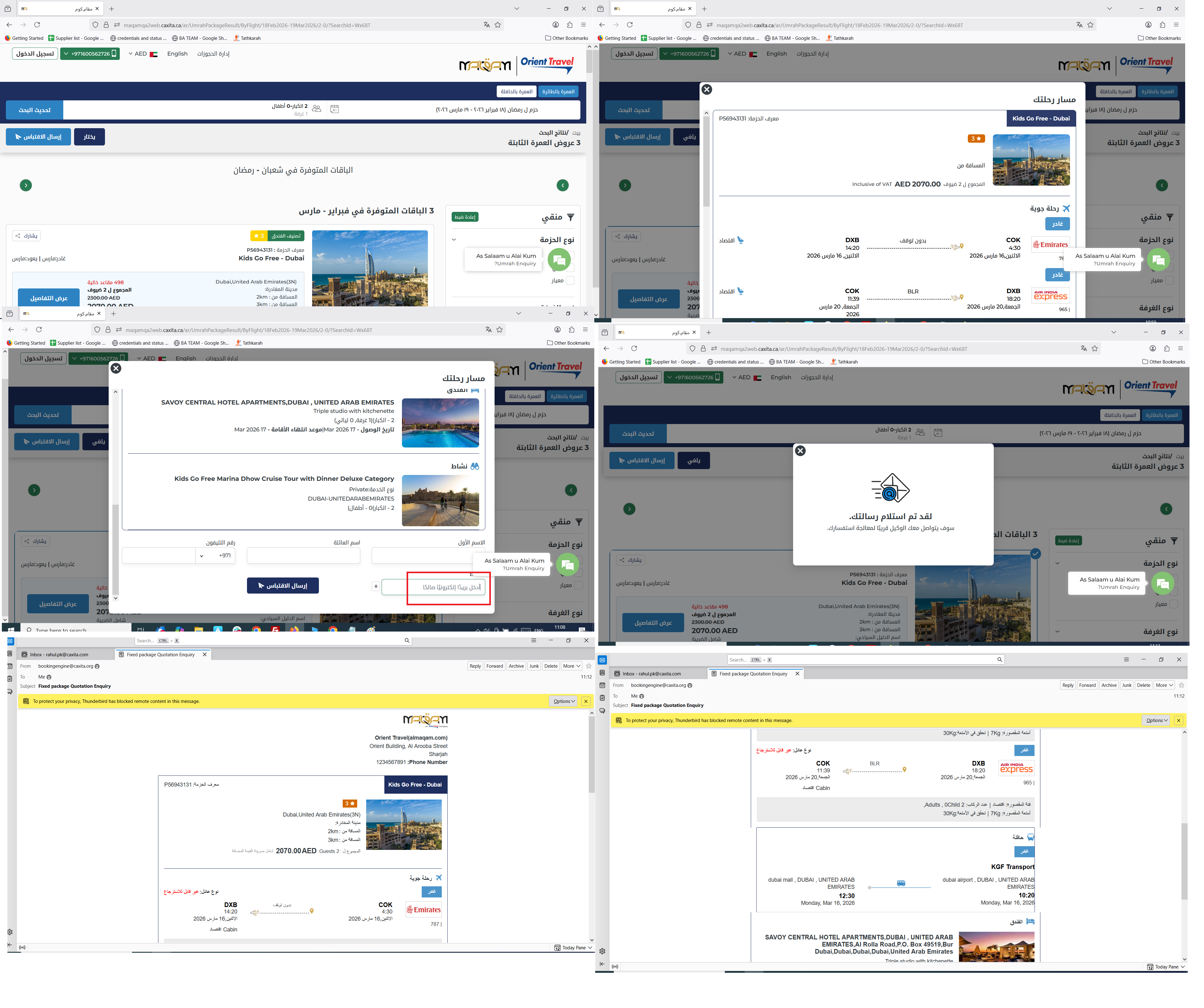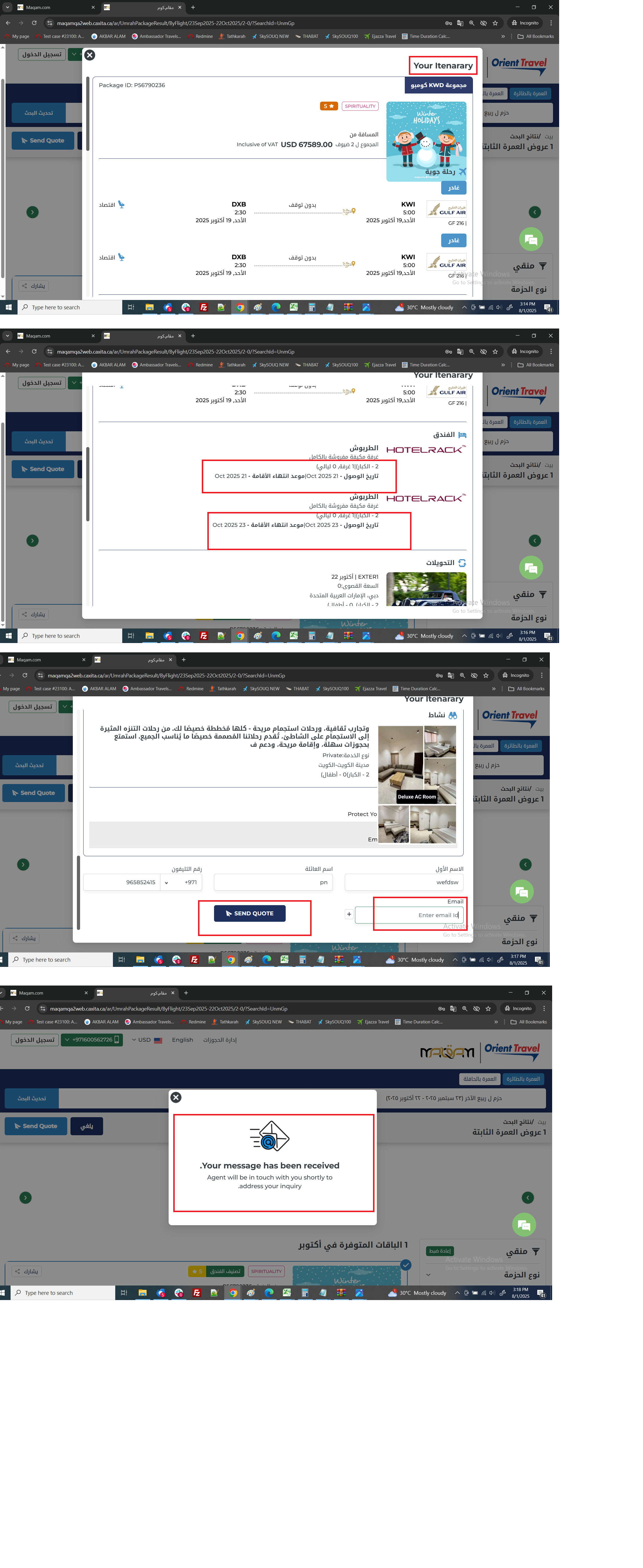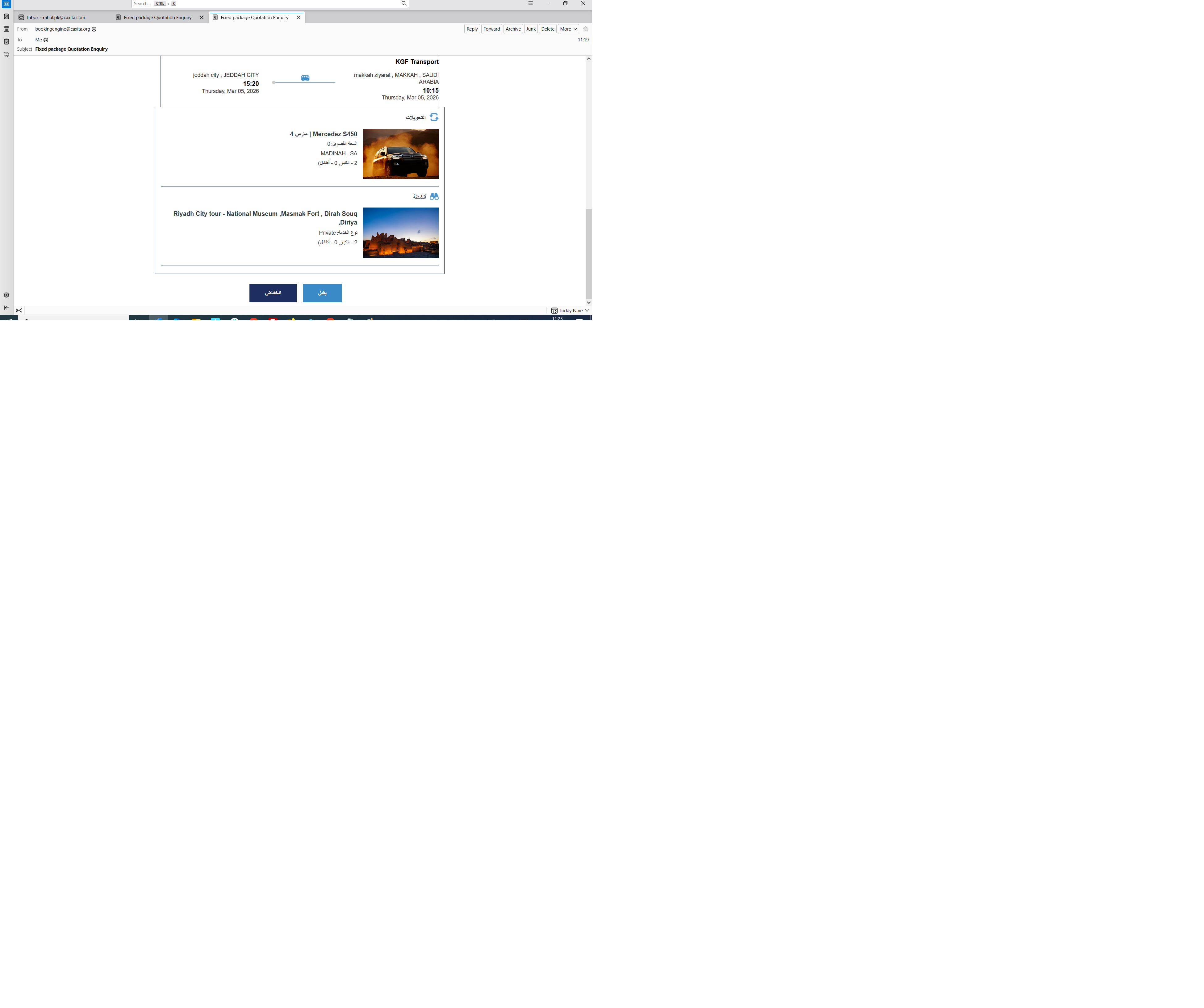 Fixed package | Result page | Quotation details pop up view and mail issues.| Arabic version