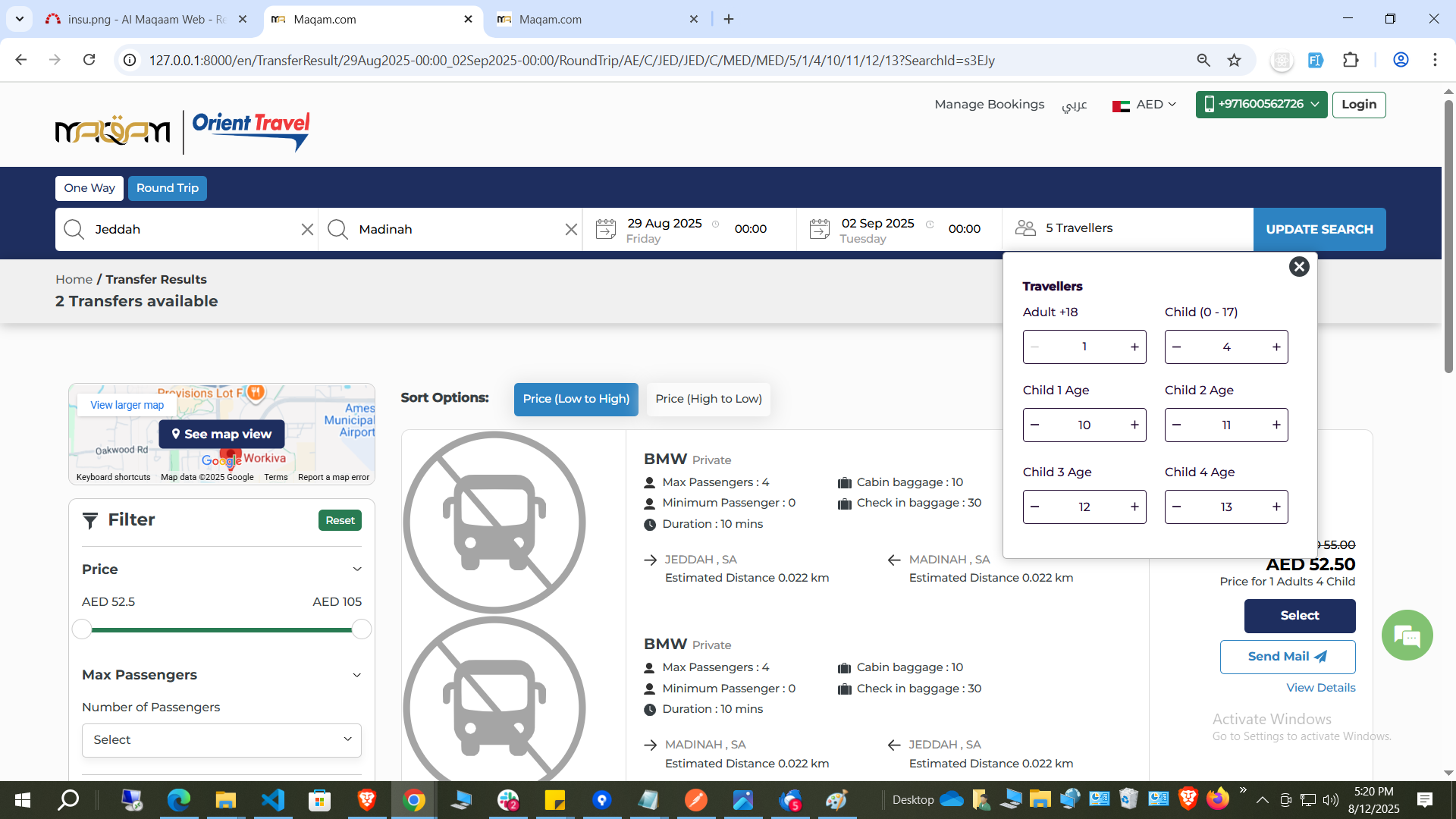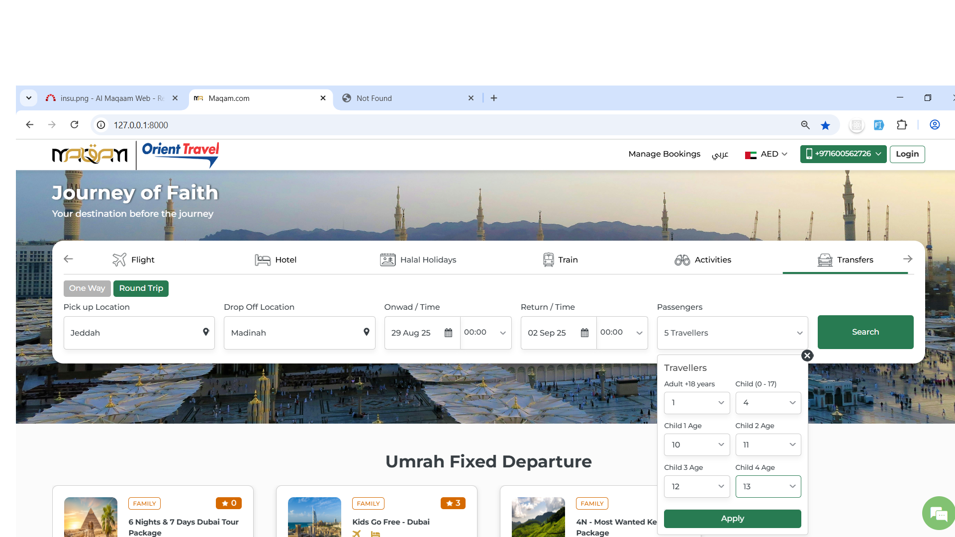 - note: In the search panel and modify search panel, the child passenger calculation is not working. It is set to two child passengers, but according to the design, the maximum number of child passengers should be 11. The child passenger calculation feature is completed.