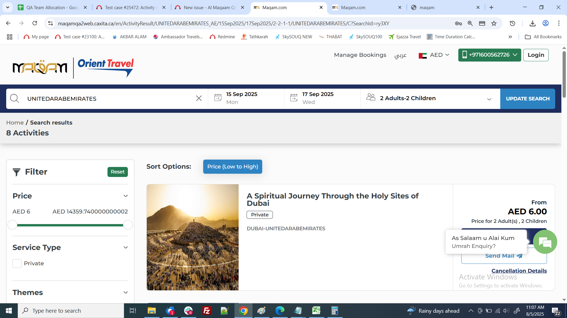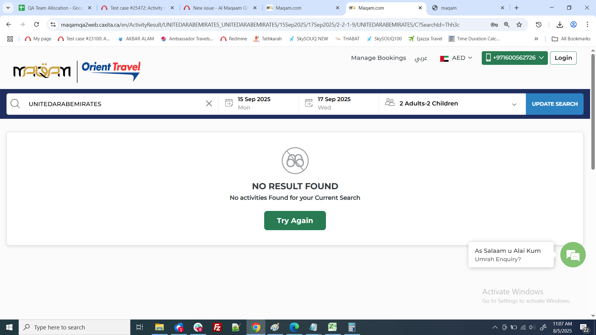Activity search with 1 adult , 1child and proceed to result page , On the result page in modify search changing the the pax count to 2adult and 2 child . It shows No result found message. while search with 2adult , 2child scenario the getting the result . Should display the correct result while using modify search. Issue exist in date changing also .Modify search is not properly working. Please fix it issue.