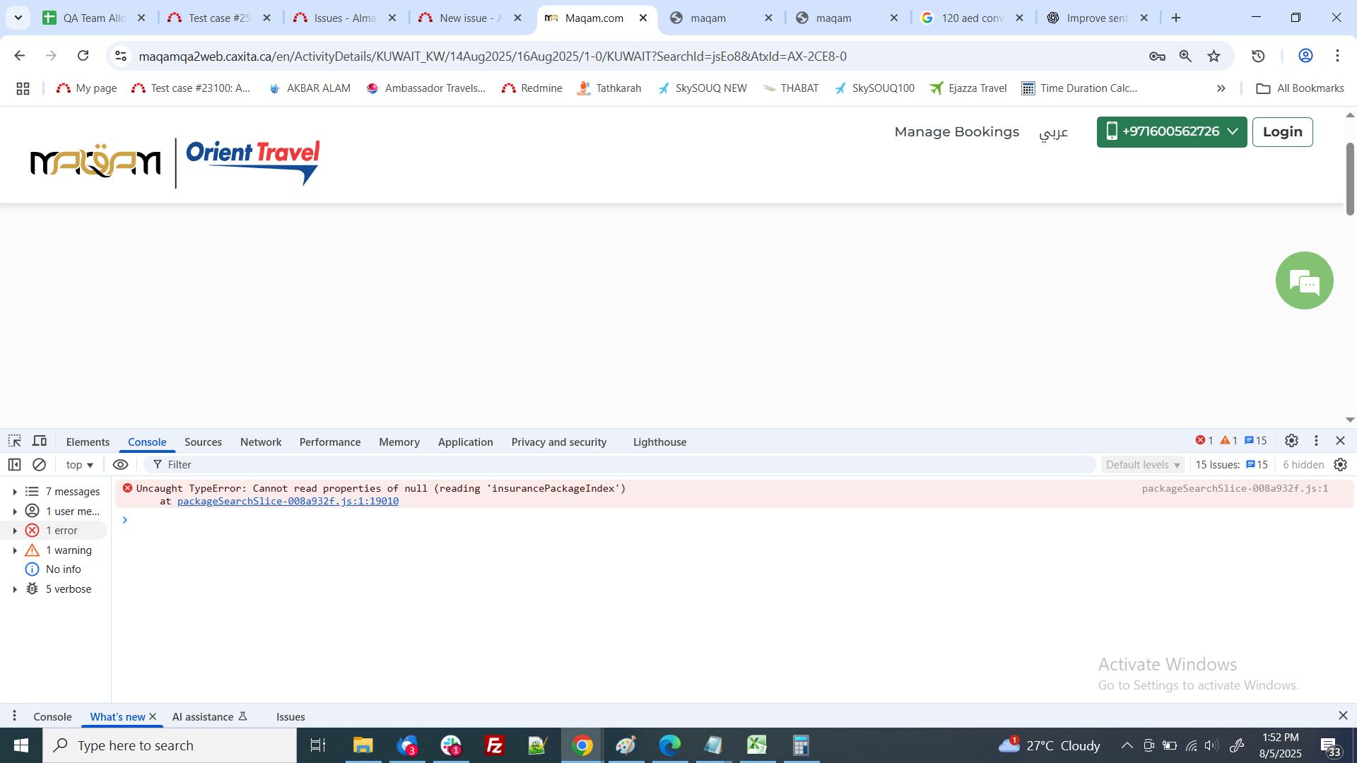 After searching for an activity and proceed to the results page, selecting an activity redirects to a blank page. Upon checking the logs, an error entry is generated. The Same issue founded for Hotel module also