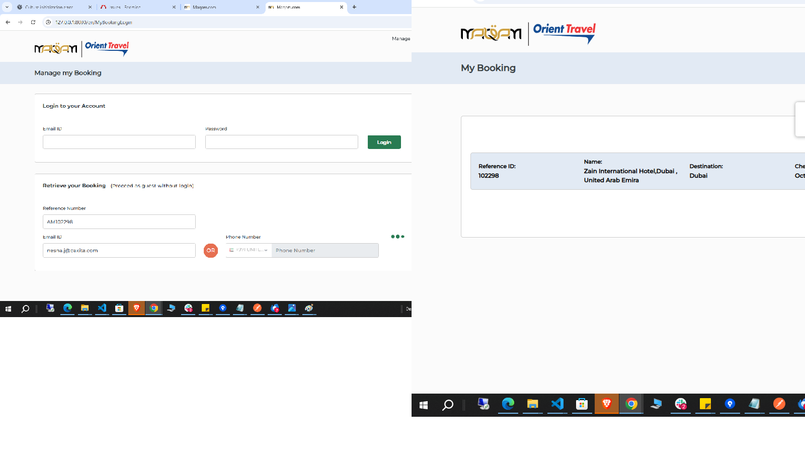 1)When we retrieve hotel booking using Reference number and Email ID or Reference number and phone number it shows continuous loader. Please fix this issue.