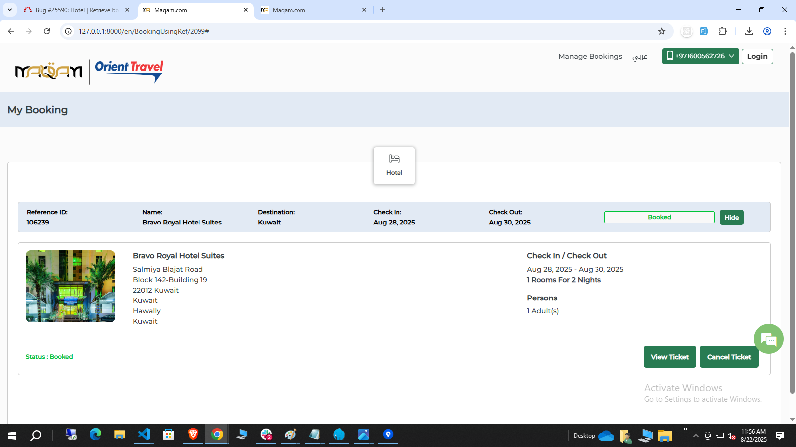 1)When we retrieve hotel booking using Reference number and Email ID or Reference number and phone number it shows continuous loader. Please fix this issue.-fixed