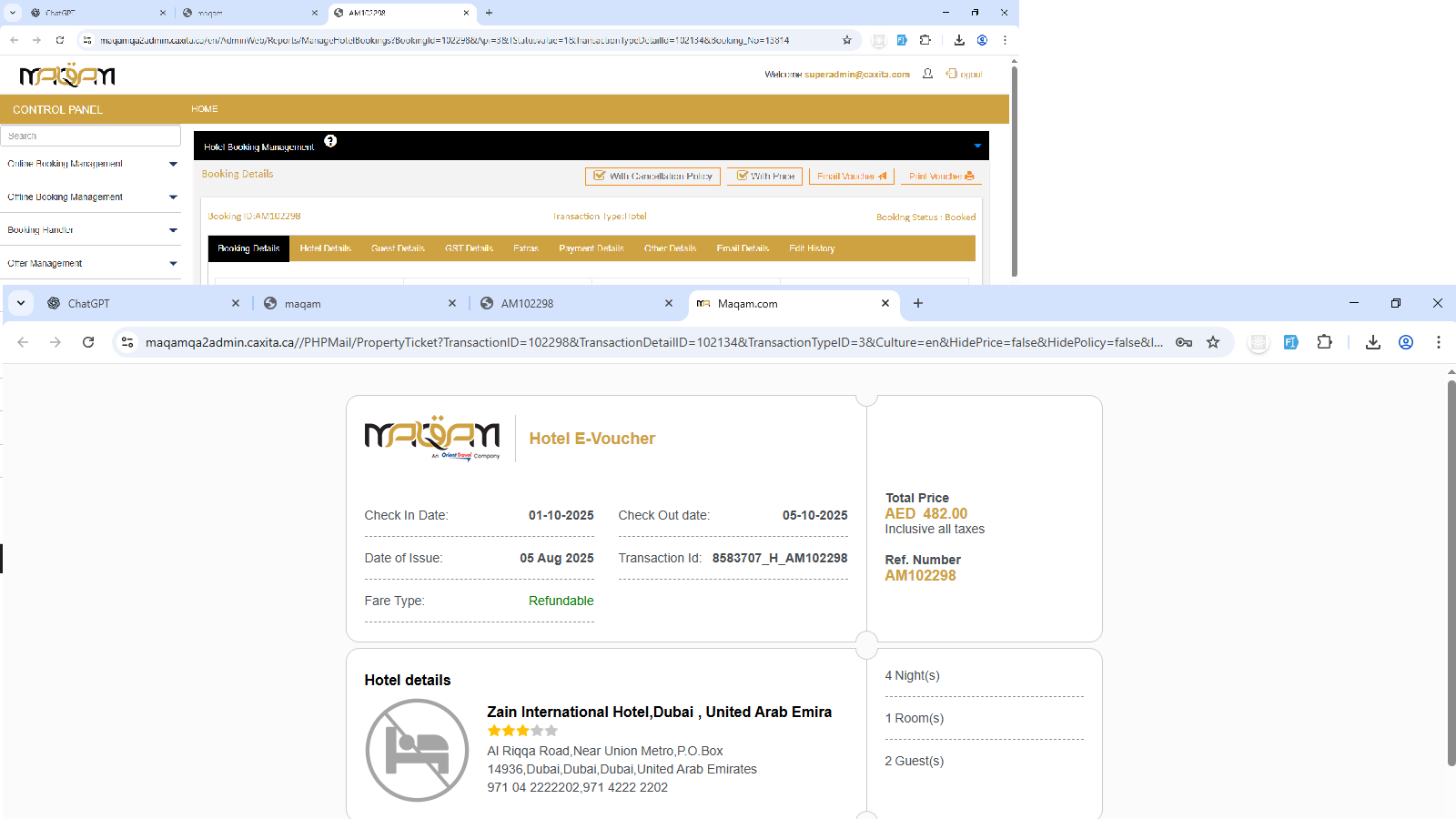 - when retirving this transaction the hotel image appears to be broken - no issue found