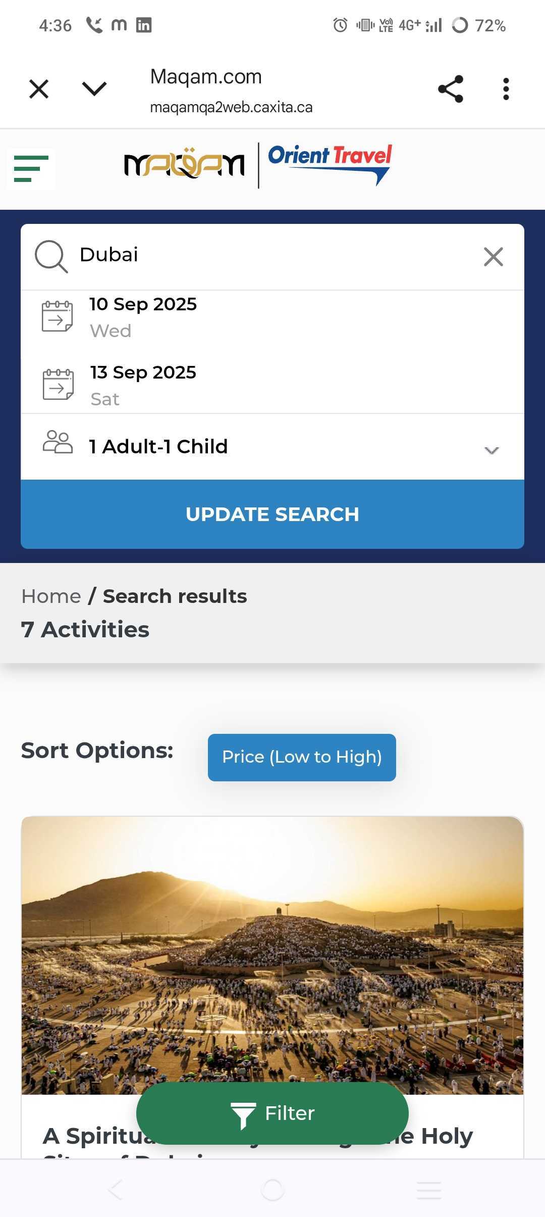 Search a activity through mobile and proceed up to result page , On the result page filter image is displayed while click on the filter not displayed the filter section . should be display the filter section while click on filter image. Please fix the issue.