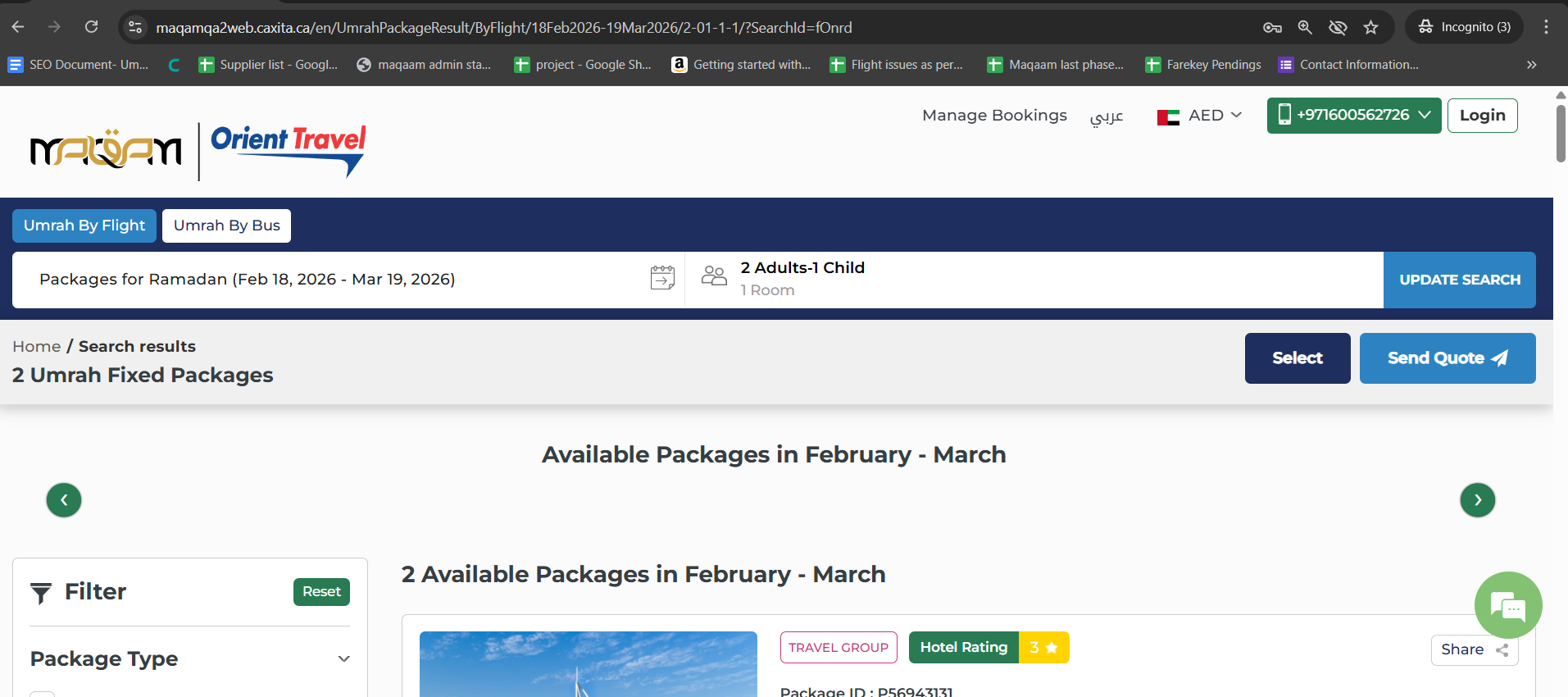 1. In the fixed package, when I do a search of 2 adult in one room, and 1 adult and 1 child in 2nd room, then the search is going only for 2 adult and 1 child for one room and 2nd room is not showing and the price is also shown based on that. In the modify search, it shows 2 adult and 1 child and search goes based on that. Please check the modify search if its working fine and the search also not going based on how I search. This is one scenario that client found. this issue is already fixed in the task #25965
