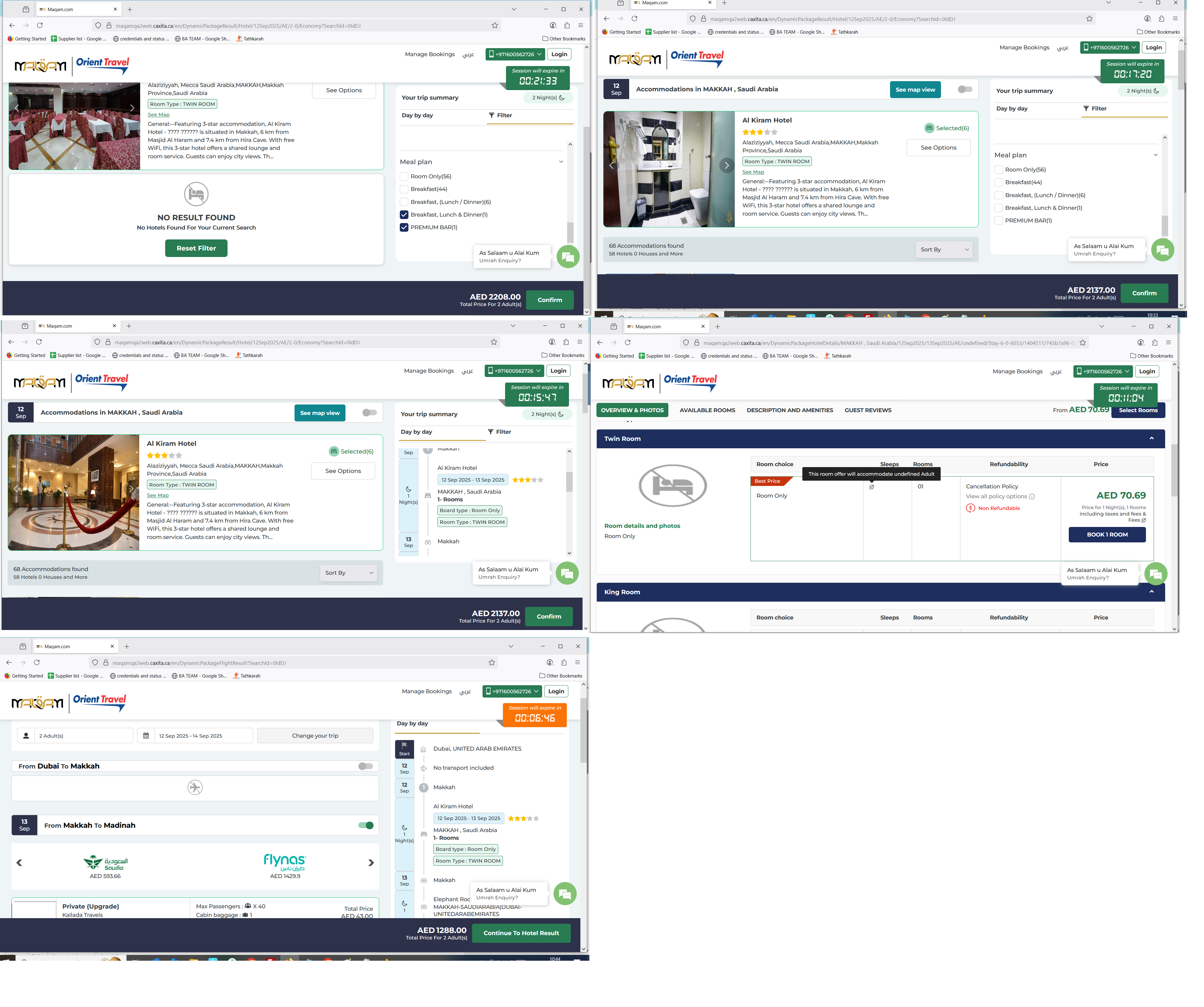 Search any dynamic package and proceed up-to hotel result page below issues founded - Current search scenario - Dubai-Makkah-Madinah-Dubai