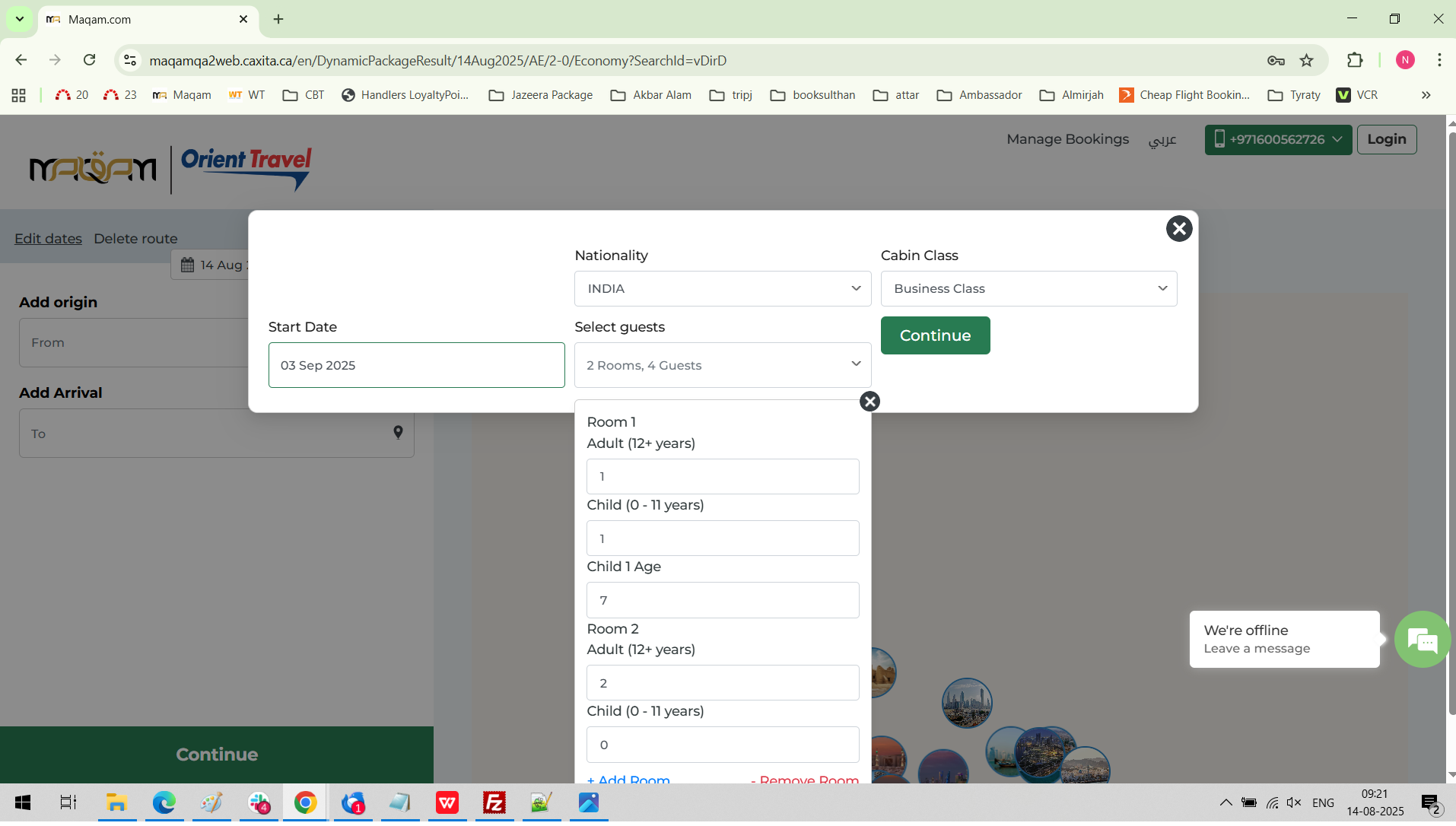 Search any dynamic package with multi-pax and multi room or current search scenario Dubai - Makkaha - Madinah - Dubai Room 1 1 adult 1 child age = 7 & room 2 2 adult