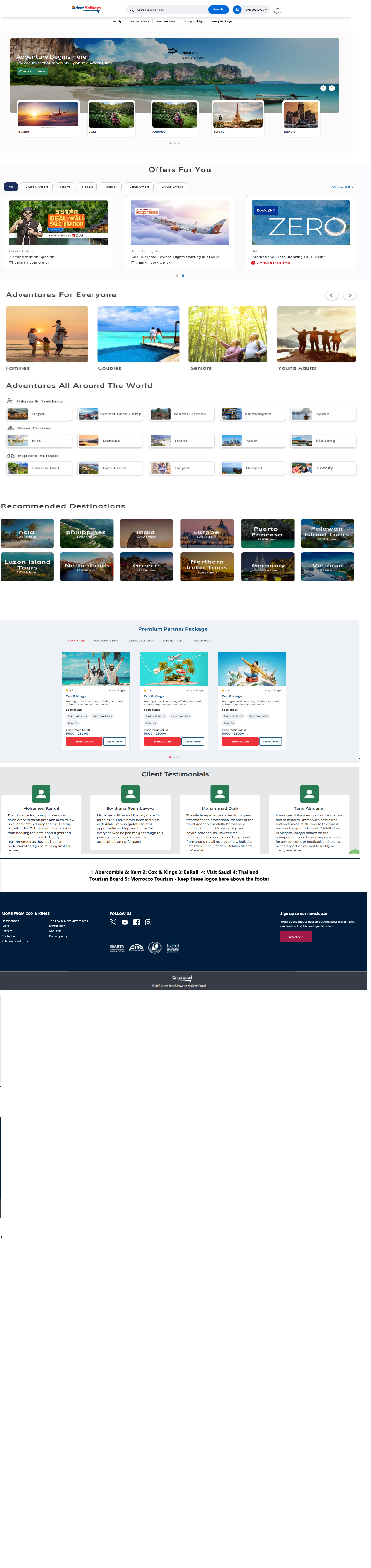 5. Adventures for everyone, adventures all around the world, Recommended destinations - these 3 section take from below design.