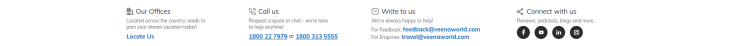9. Use below website footer - about us, t &c, privacy policy, faq, Travel Insurance, blogs, visa, Tourism Boards, Our Partners, media centre, careers, contact us, Destination Information. Follow us needed same like below website.