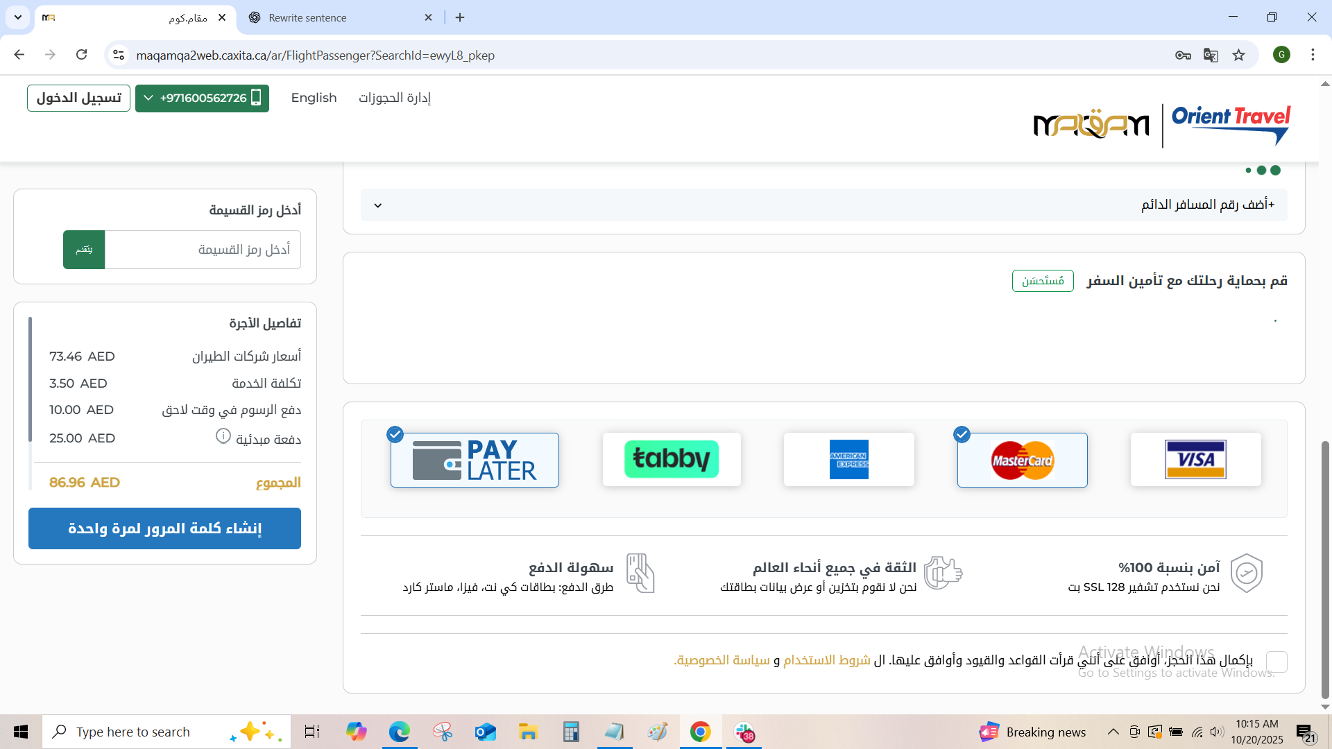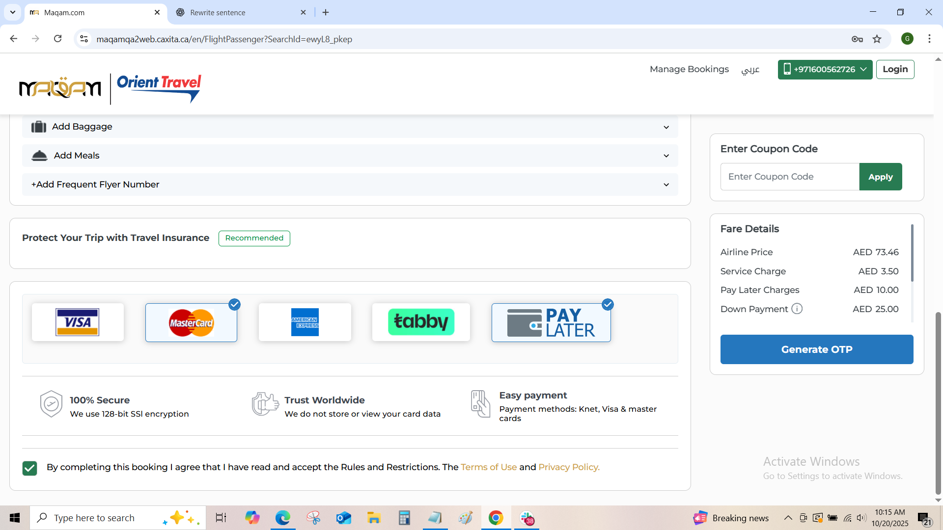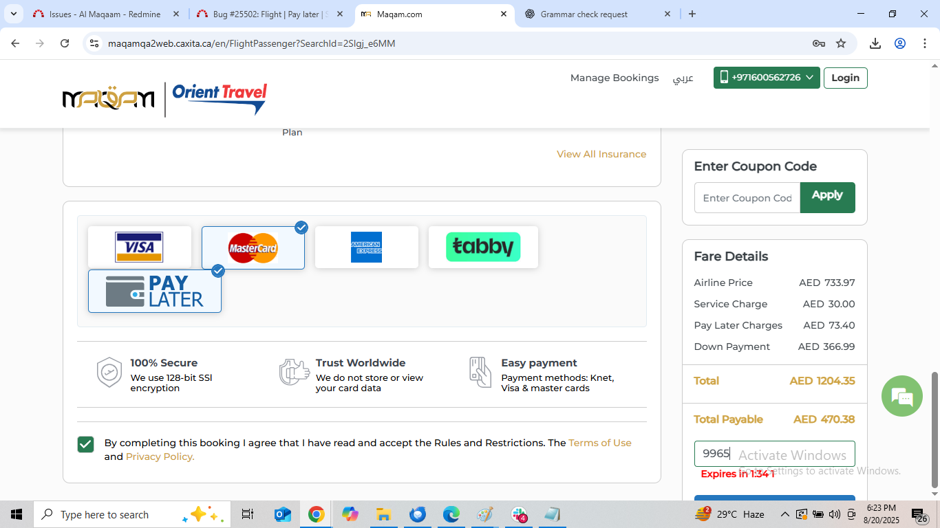 In PayLater, when the Arabic culture is selected, the 'Generate OTP' button is not fully visible when scrolling down the window.