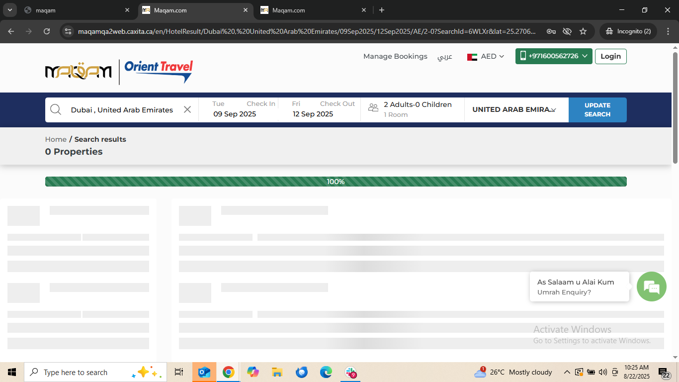 When searching with any scenario in Inventory Hotel, no results are showing. The results page displays 100% loading continuously without completing. This issue is occurring in both B2C and B2B .