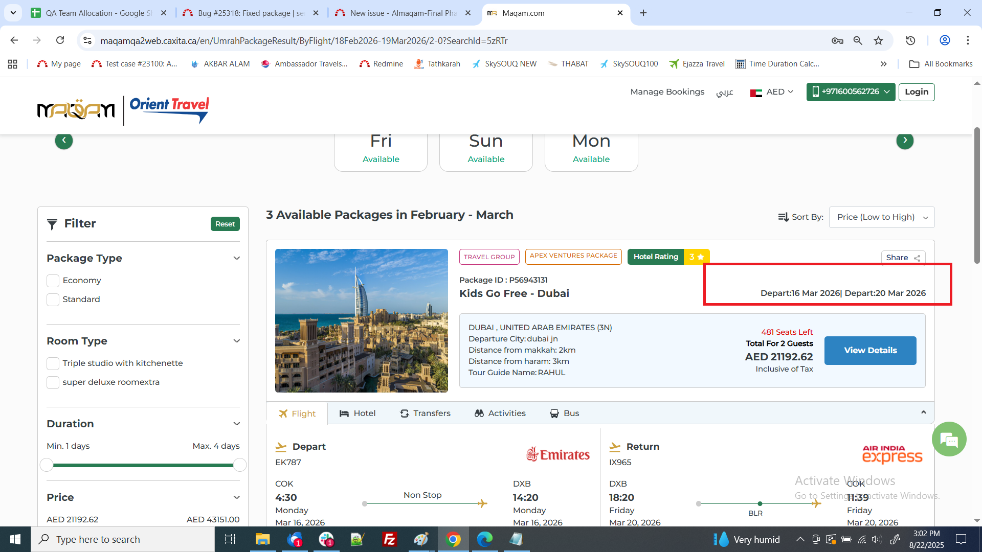 1. On the result page packages are displayed . Departure date and return date is displayed for each package details . As of now return date text is displayed as departure date . Should display return text correctly. ---Fixed-----