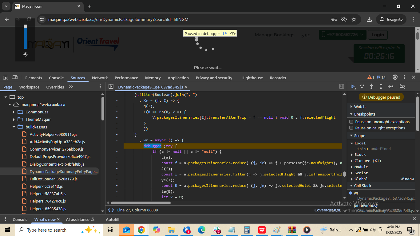 1.Proceed to the dynamic summery page , there is a continuous loader is showing unable to proceed to the pax page .Please fix the issue
