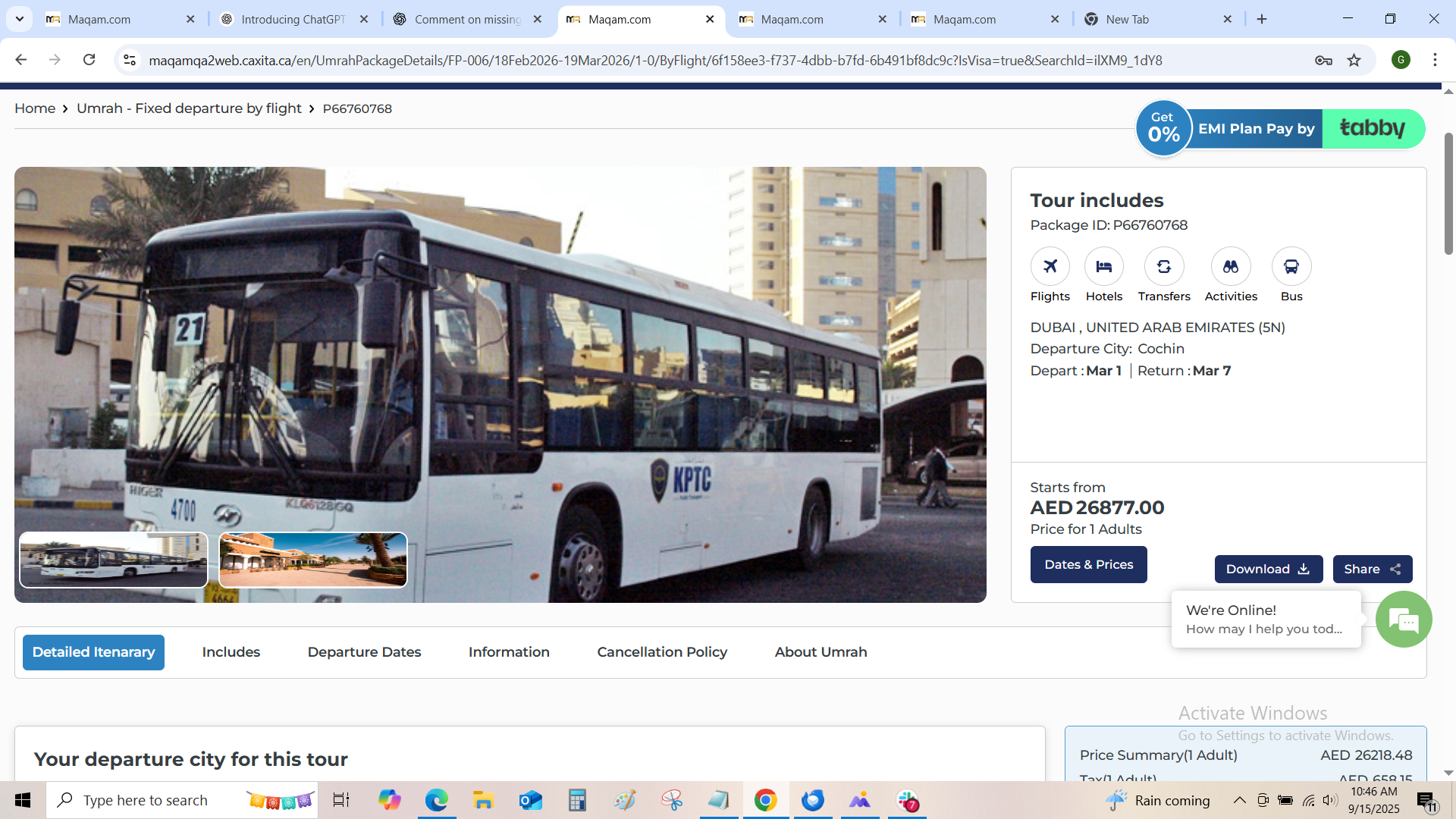 closedMaqaam || Fixed package || while choosing from home page fixed package deals || View tour || share and download option shows continuous loader